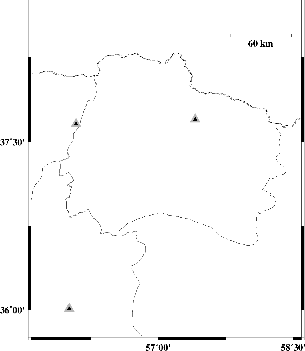 | 2011/11/07 | 05:50:45.3 | 09:20:45.3 | 37.25 | 57.09 | 14 | ML3.5 | Khorasan(north) Province, 36 km South-East of Ashkhaneh | ||