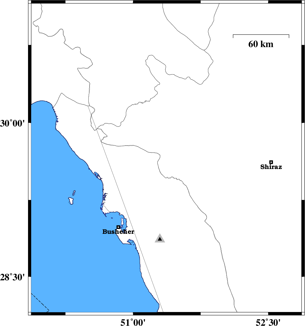 | 2011/10/19 | 05:49:01.0 | 09:19:01.0 | 28.78 | 51.24 | 10 | ML3.2 | Bushehr Province, 11 km Ahram |