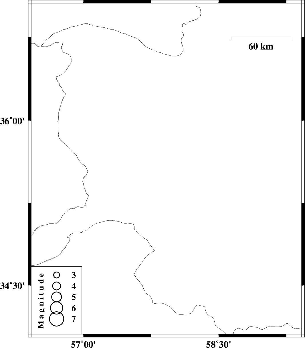 | 2011/11/14 | 06:54:37.0 | 10:24:37.0 | 35.55 | 57.92 | 43 | ML3.3 | Khorasan(center) Province, 32 km North of Bardeskan |