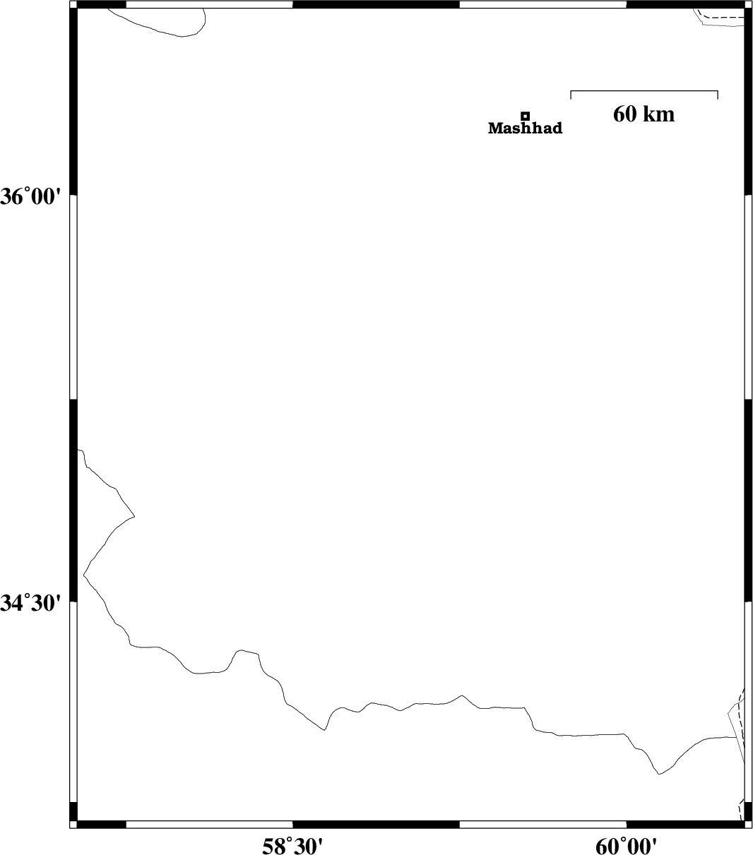 | 2011/11/14 | 06:54:37.0 | 10:24:37.0 | 35.55 | 57.92 | 43 | ML3.3 | Khorasan(center) Province, 32 km North of Bardeskan |