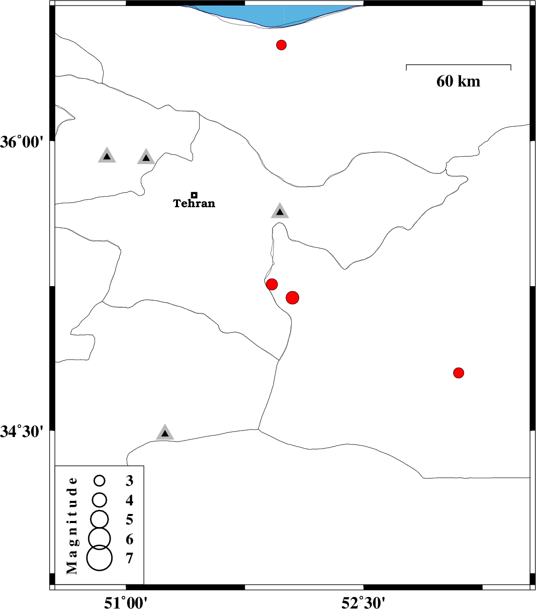 | 2011/11/20 | 13:19:08.2 | 16:49:08.2 | 35.26 | 51.92 | 18 | ML3.3 | Semnan Province, 24 km East of Varamin | ||