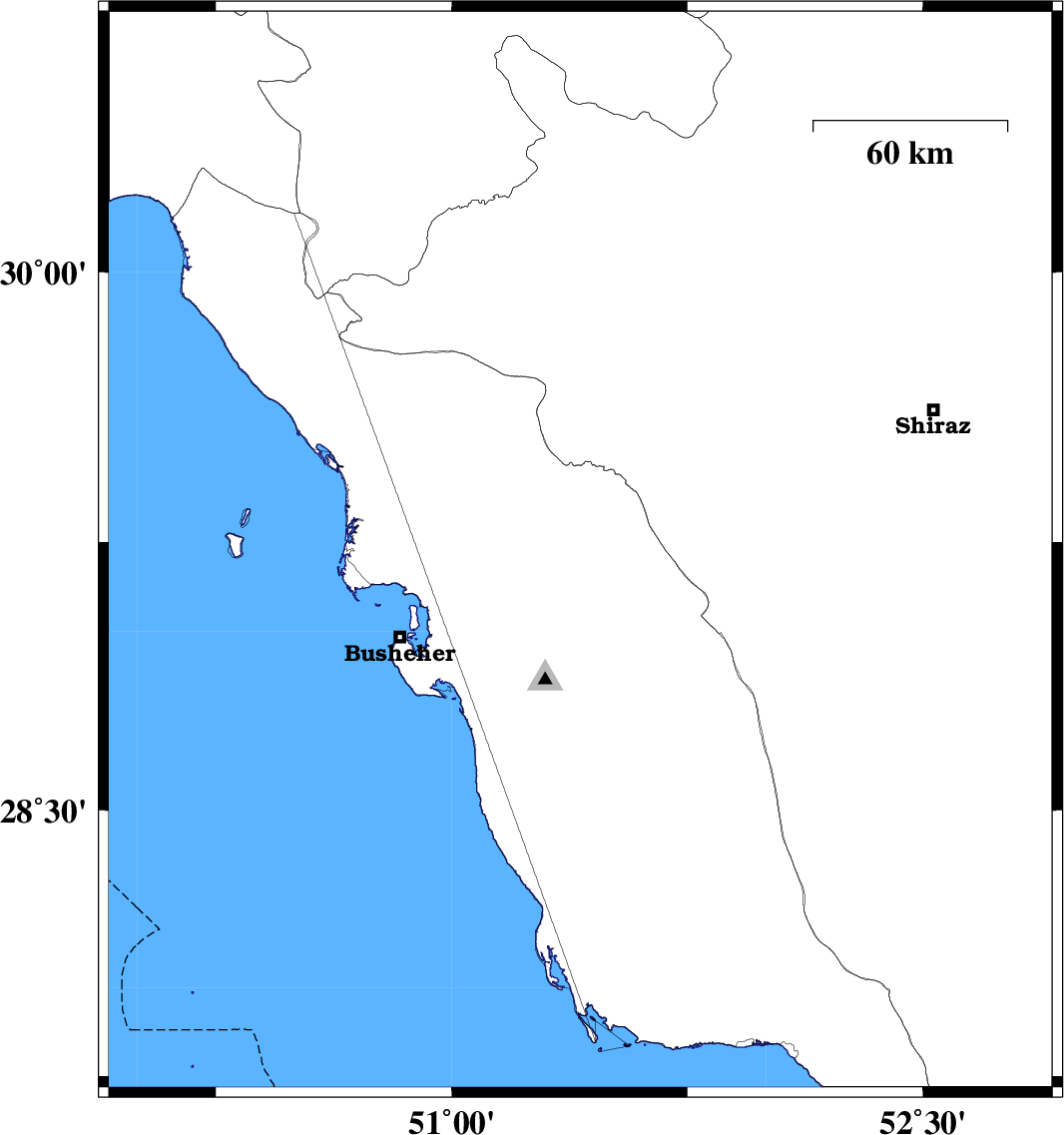 | 2011/12/05 | 06:12:45.0 | 09:42:45.0 | 29.22 | 51.41 | 3 | ML3.5 | Bushehr Province, 20 km East of Borazjan |