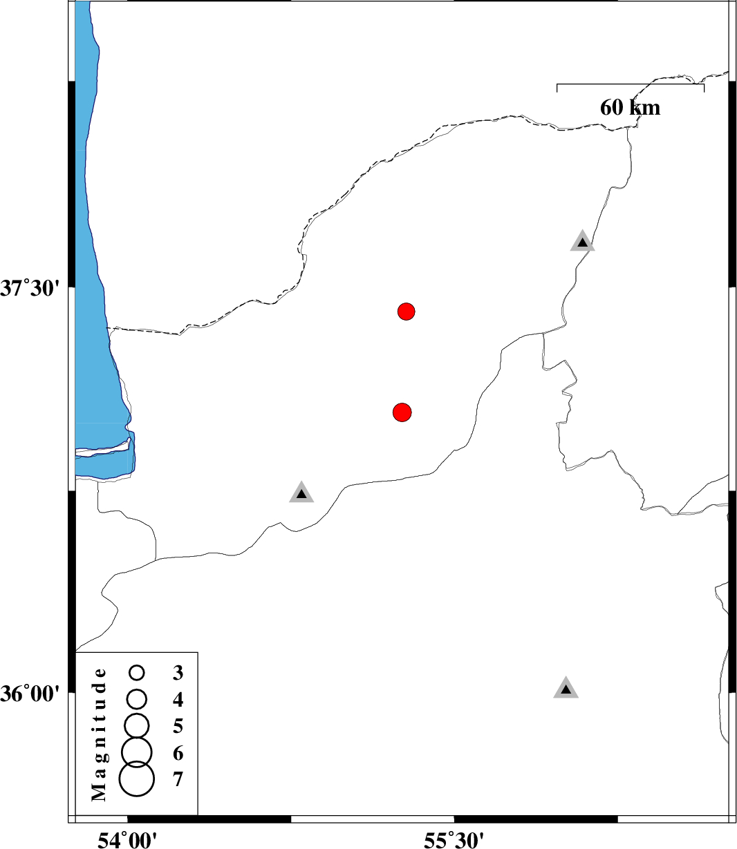 | 2011/12/11 | 15:21:19.4 | 18:51:19.4 | 37.04 | 55.26 | 17 | ML3.8 | Golestan Province, 8 km Azadshahr | ||