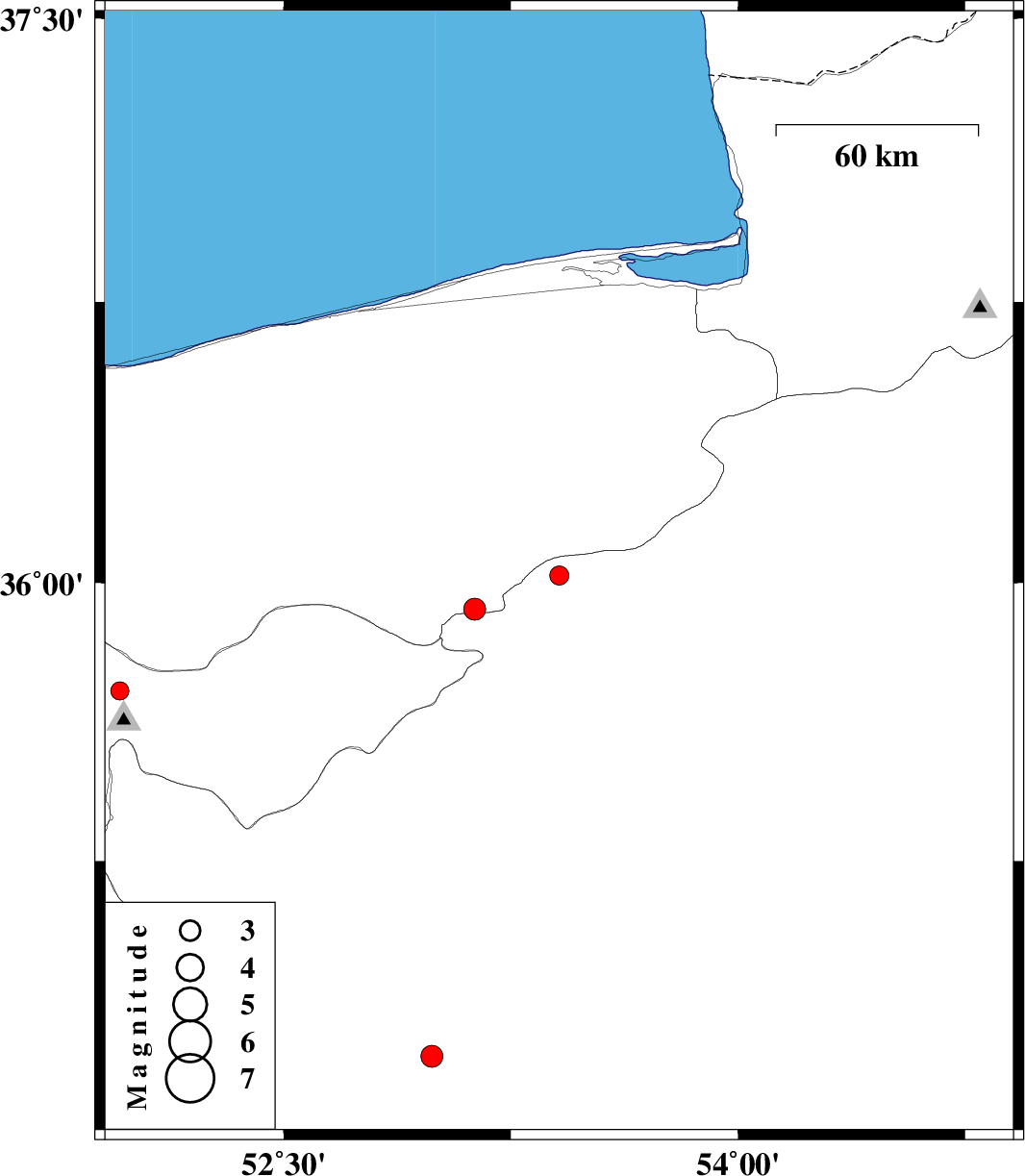 | 2011/12/12 | 00:24:53.9 | 03:54:53.9 | 36.02 | 53.41 | 14 | ML2.8 | Semnan Province, 33 km East of Pol-E-Sefid | ||