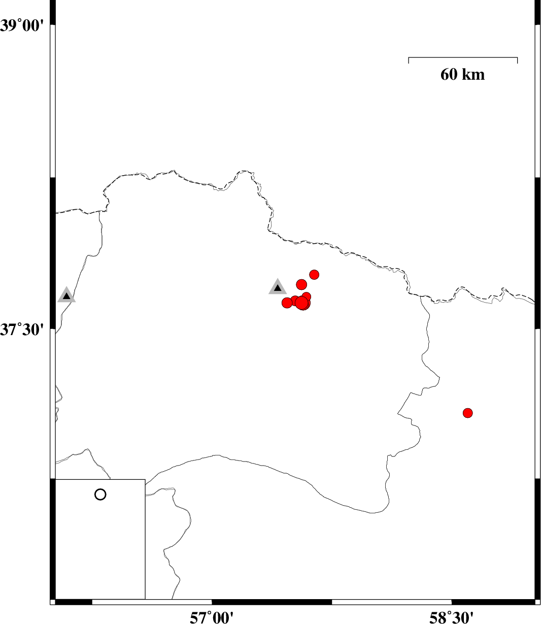 2011/12/24 22:56:20.4 02:26:20.4 37.0858.66 ML2.7 Khorasan(center) Province, 9 km Quchan