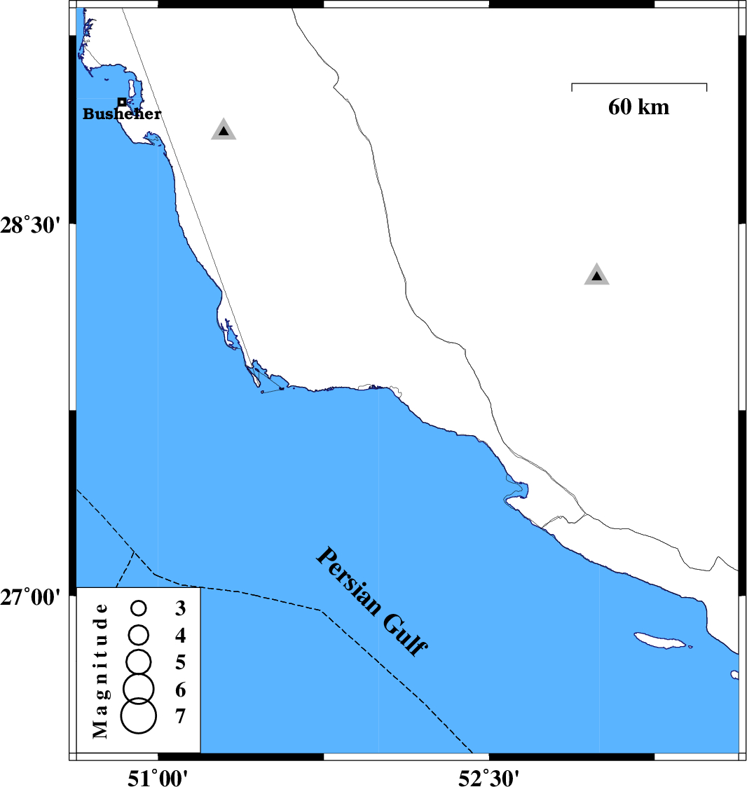 | 2011/12/26 | 20:18:08.4 | 23:48:08.4 | 27.86 | 52.13 | 38 | ML3.9 | Bushehr Province, 8 km Bandar-e kangan |