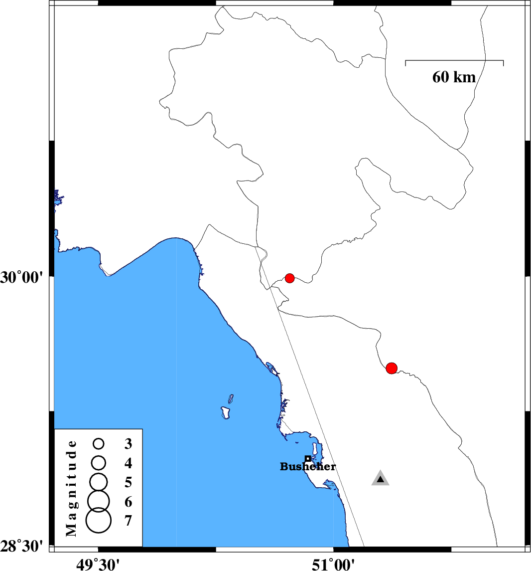 | 2011/12/25 | 08:56:46.1 | 12:26:46.1 | 29.49 | 51.37 | 35 | ML3.3 | Fars Province, 30 km North-East of Borazjan |