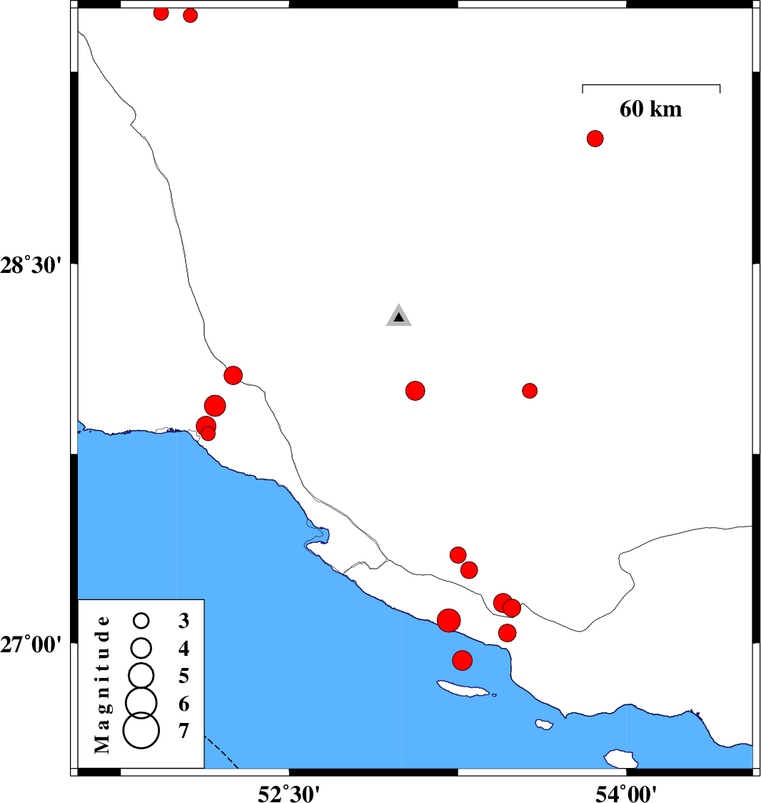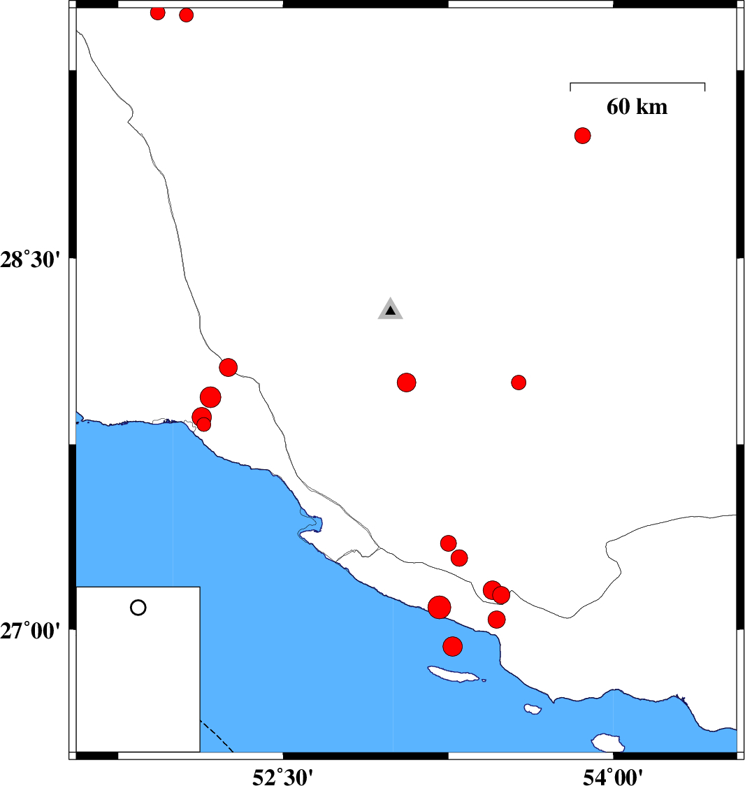 Bushehr Province, 17 km North-East of Bandar-e kangan | |