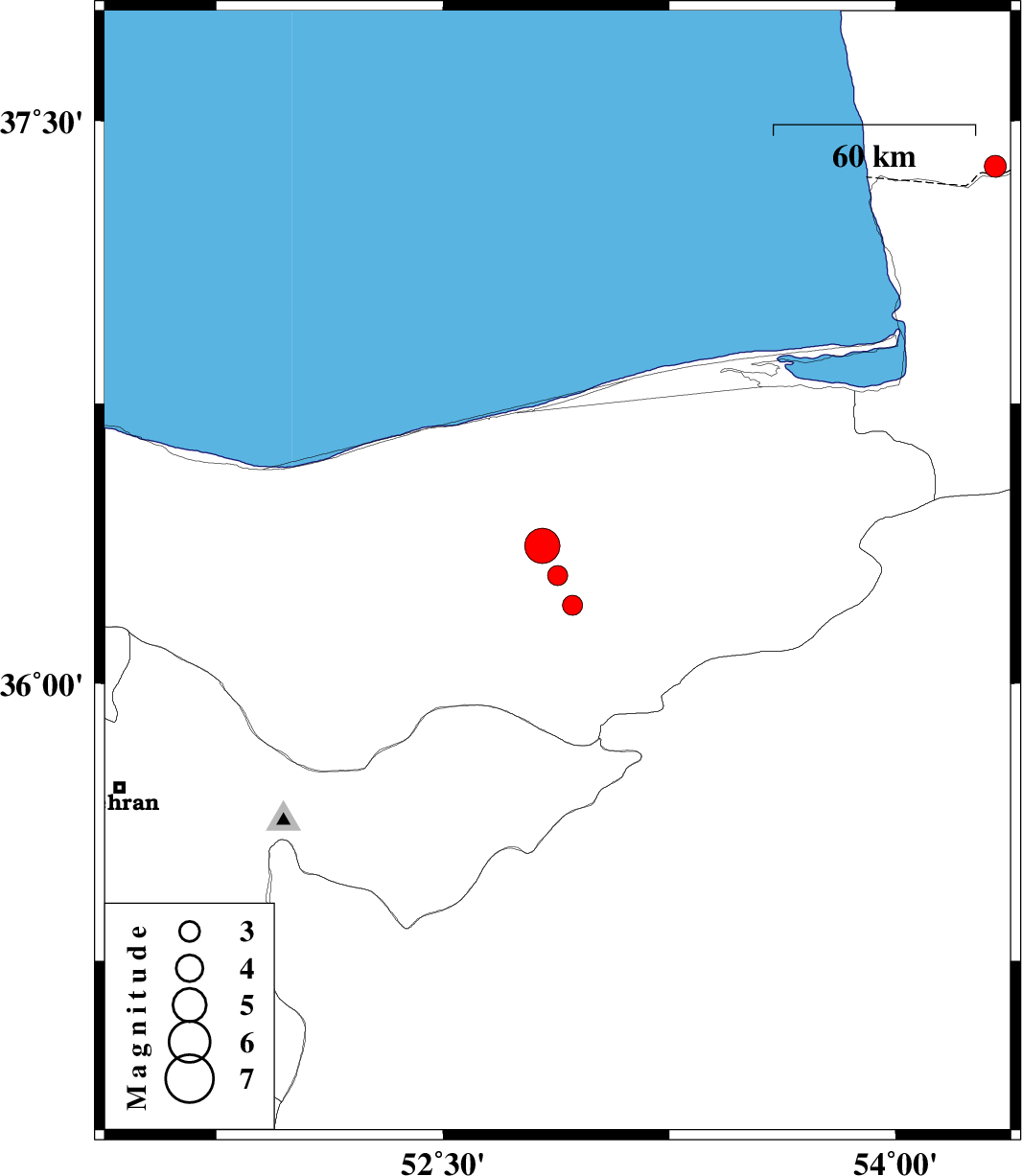 | 2012/01/11 | 17:22:27.8 | 20:52:27.8 | 36.29 | 52.88 | 14 | ML3 | Mazandaran Province, 19 km South of Qaemshahr | ||
