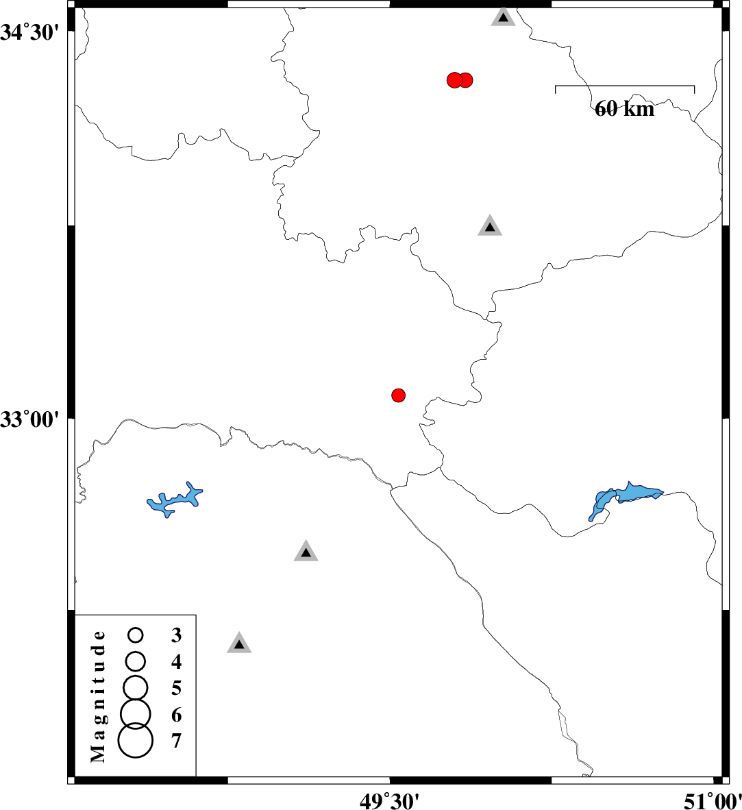 | 2012/01/14 | 09:45:11.9 | 13:15:11.9 | 33.09 | 49.54 | 15 | ML2.8 | Lorestan Province, 41 km South of Azna |
