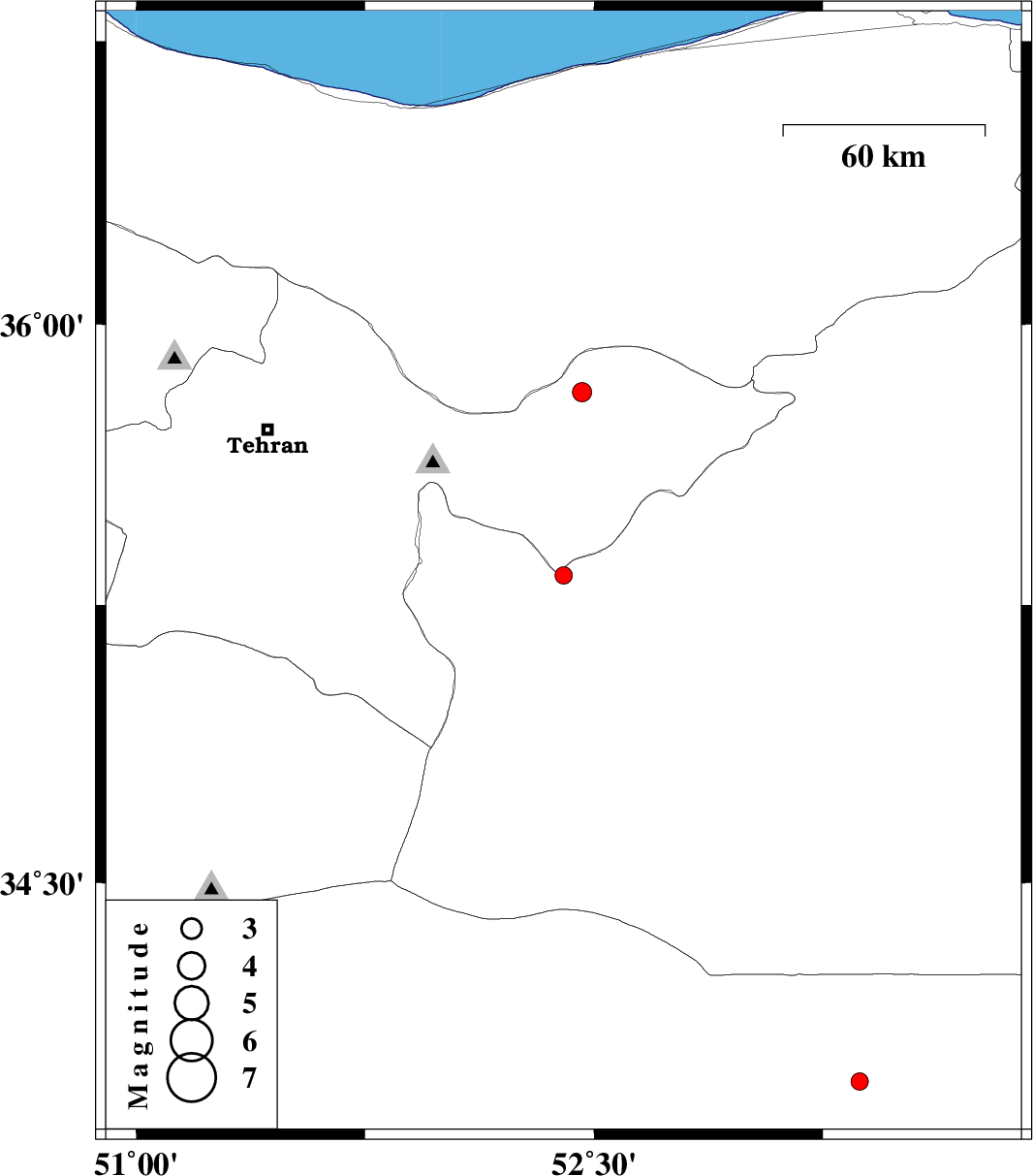 | 2012/01/16 | 11:44:02.2 | 15:14:02.2 | 35.82 | 52.46 | 6 | ML2.8 | Tehran Province, 29 km West of Firuzkuh | ||
