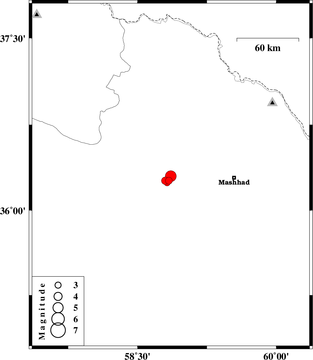 | 2012/01/19 | 12:35:51.2 | 16:05:51.2 | 36.3 | 58.86 | 16 | ML5.4 | Khorasan(center) Province, 12 km Neyshabur | download | |