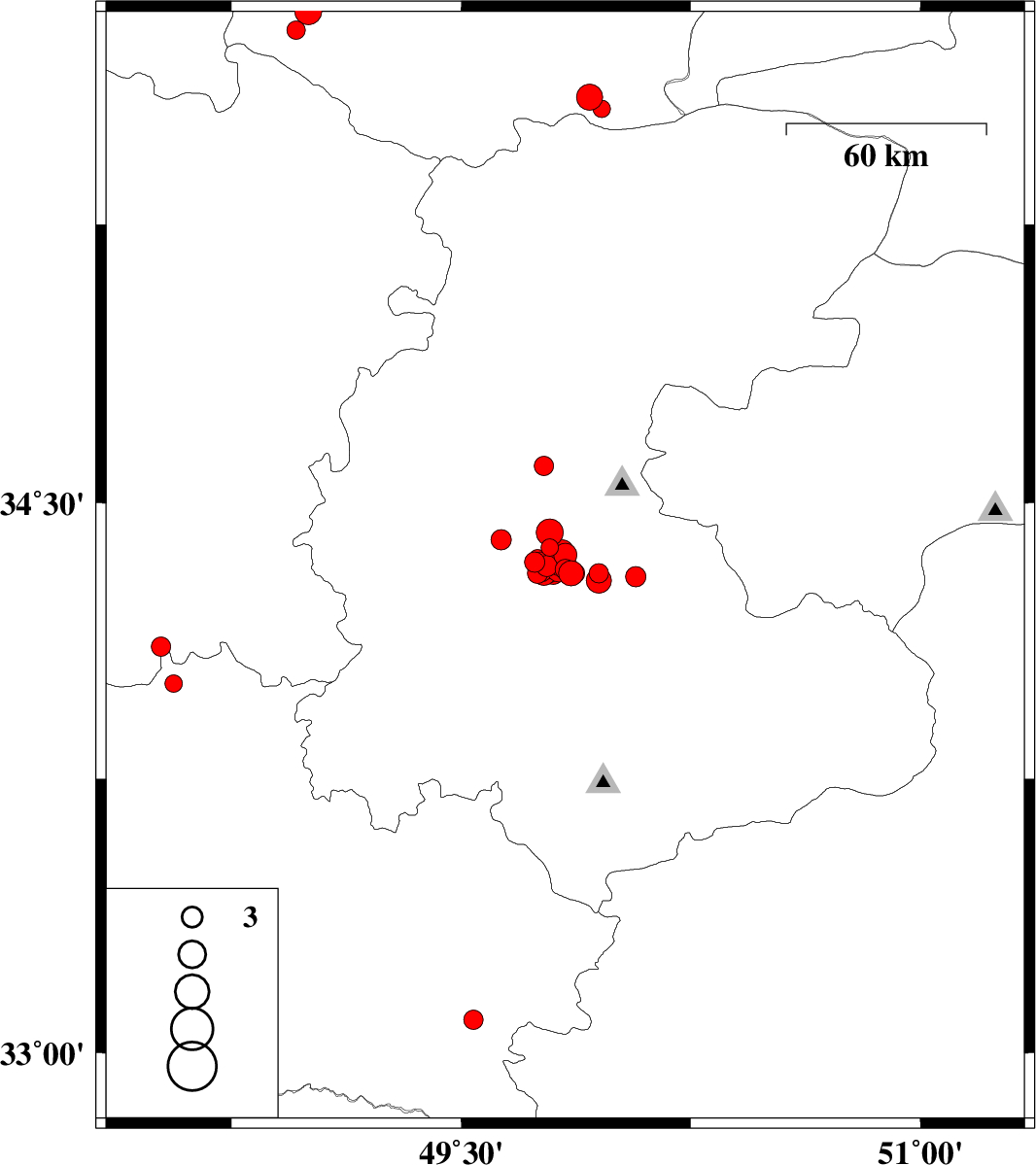 | Prel. Rep. | Date | Time(UTC) | Time(Local) | Lat. | Lon. | Depth | Mag. | Region | Waveform |
