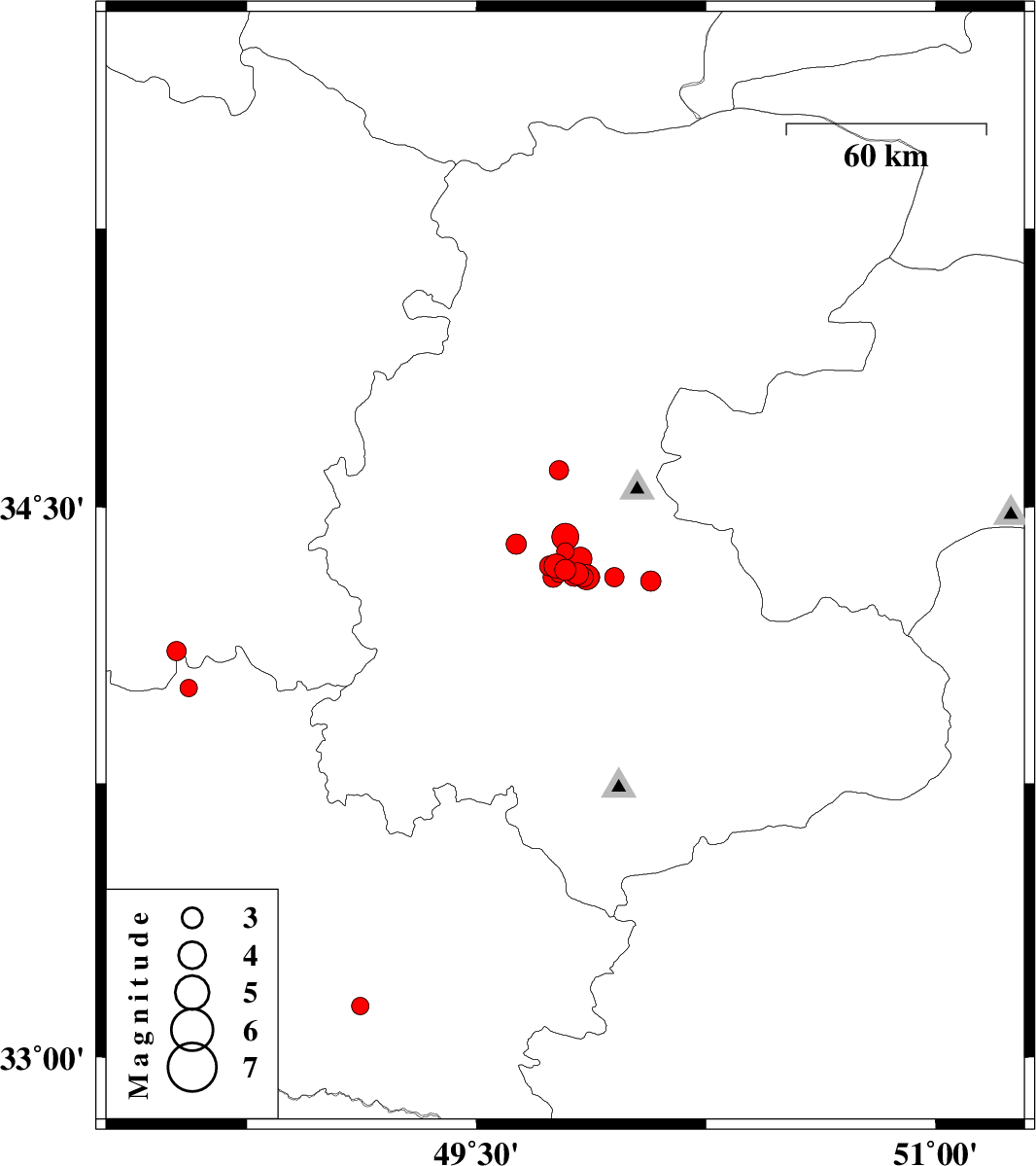2012/01/23 01:50:21.2 05:20:21.2 34.3249.8414 ML3 Markazi Province, 28 km South-West of Ashtiyan