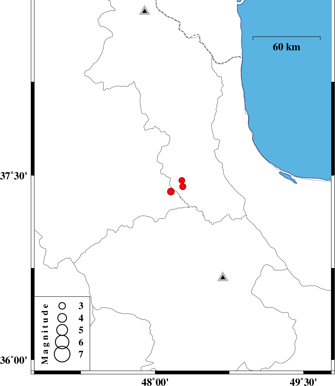 | 2012/02/03 | 13:02:46.5 | 16:32:46.5 | 37.41 | 48.28 | 14 | ML2.9 | Ardebil Province, 33 km South-West of Givi | ||