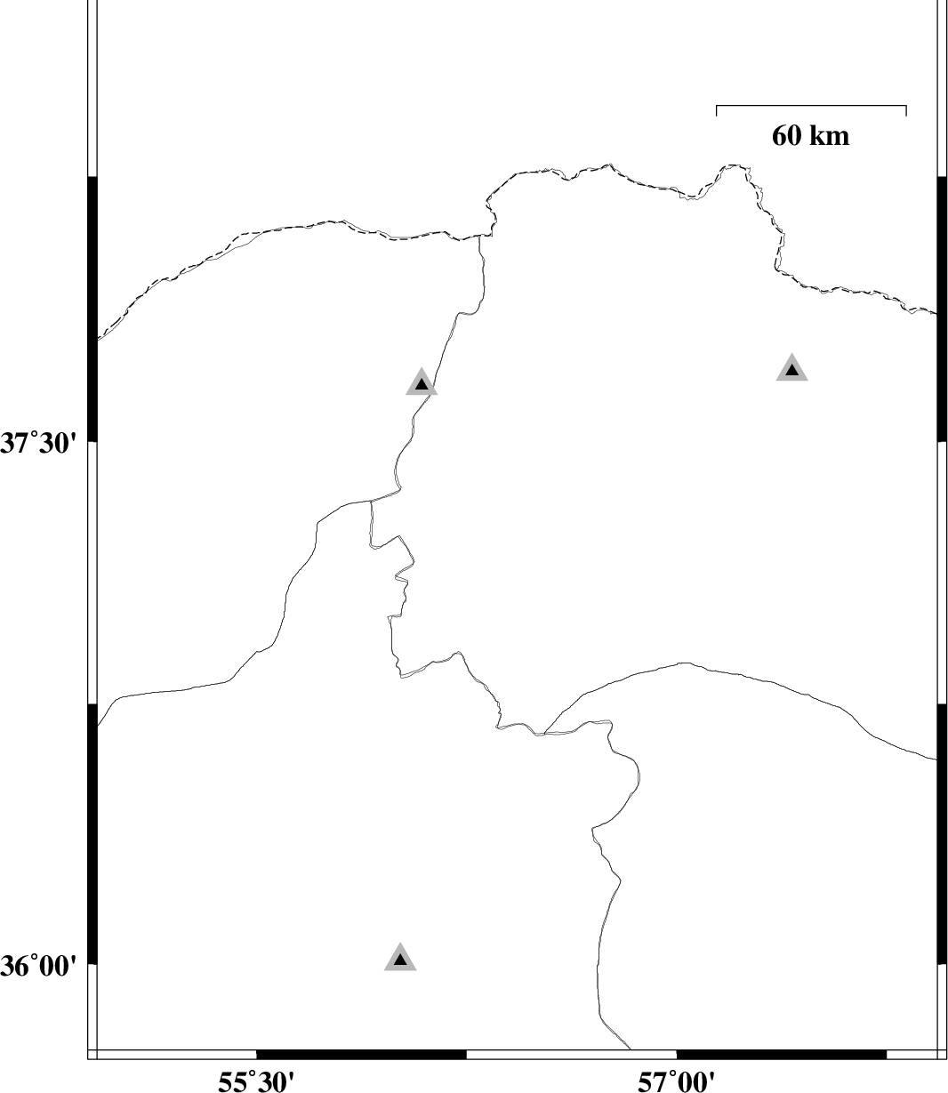 | 2012/02/13 | 15:09:44.6 | 18:39:44.6 | 36.85 | 55.39 | 14 | ML3.5 | Golestan Province, 42 km South of Minodasht | ||