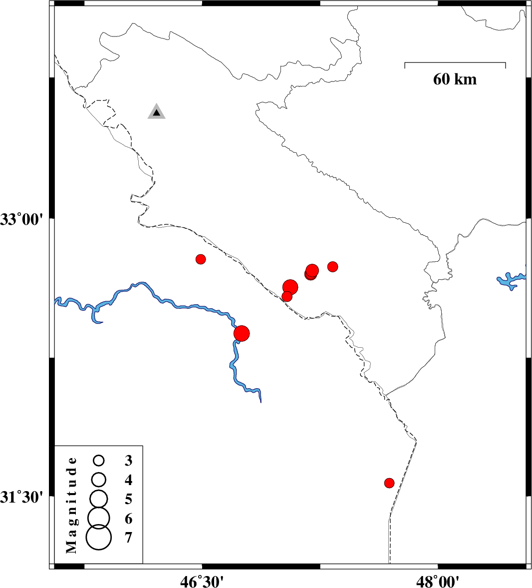 2012/02/29 06:33:44.9 10:03:44.9 32.7447.3314 ML3 Ilam Province, 8 km Dehloran