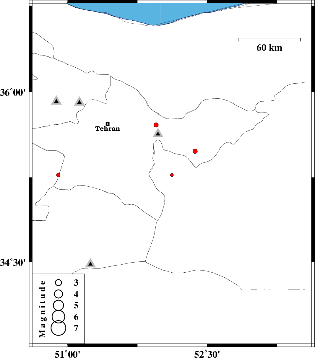 | 2012/03/10 | 19:43:50.7 | 23:13:50.7 | 35.71 | 51.95 | 9 | ML2.3 | Tehran Province, 11 km West of Damavand | ||