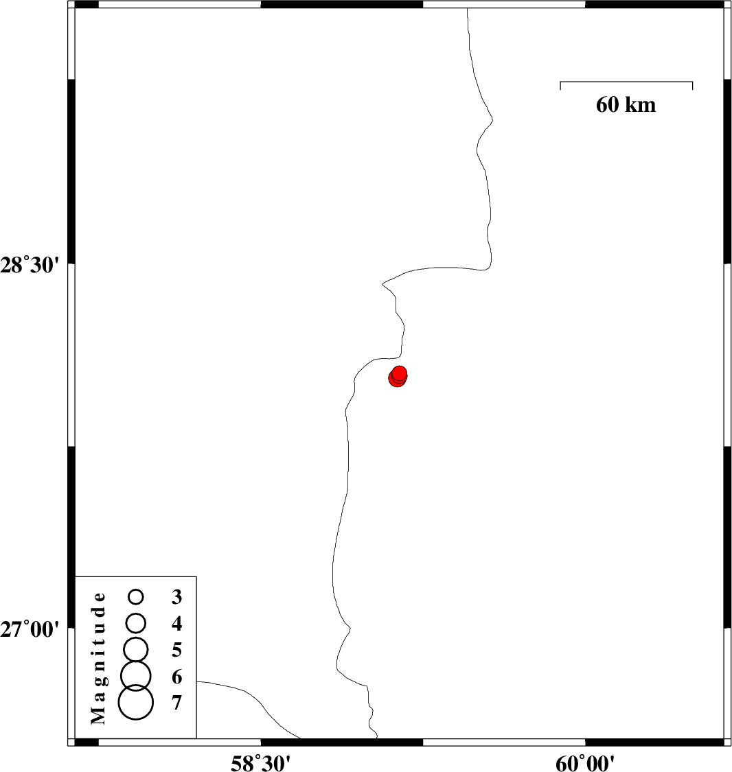 | 2012/03/10 | 14:13:30.2 | 17:43:30.2 | 28.03 | 59.13 | 15 | ML3.7 | Sistan va Baloochestan Province, 142 km East of Kahnuj |