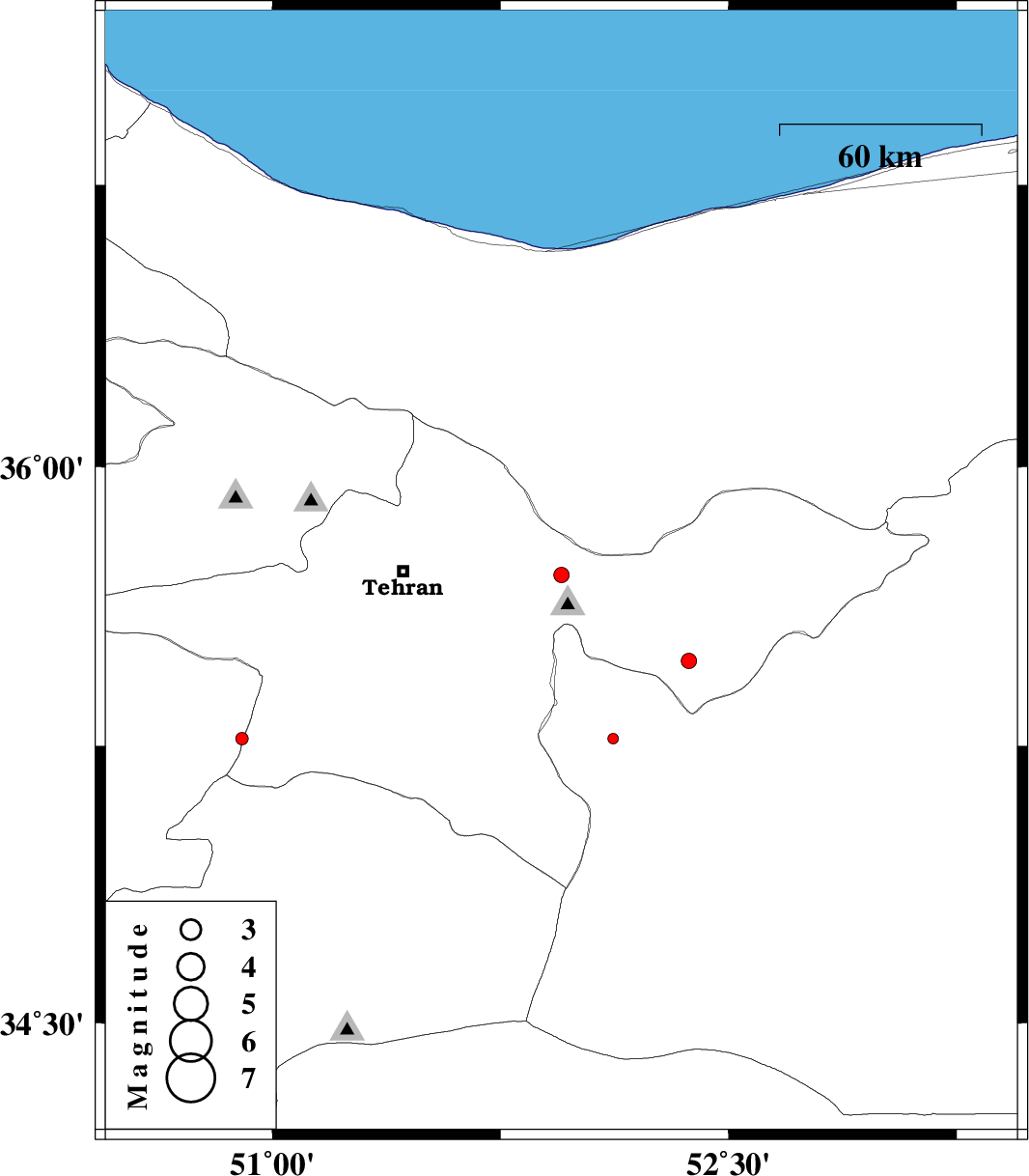 | 2012/03/10 | 19:43:50.7 | 23:13:50.7 | 35.71 | 51.95 | 9 | ML2.3 | Tehran Province, 11 km West of Damavand | ||