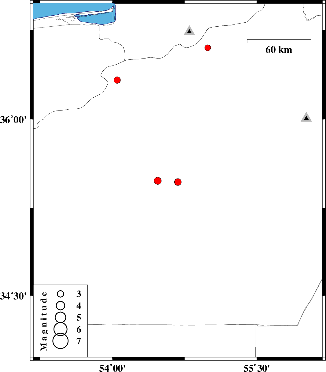 | 2012/03/14 | 02:34:02.1 | 06:04:02.1 | 36.33 | 54.05 | 14 | ML3.1 | Semnan Province, 32 km North-West of Damghan | ||