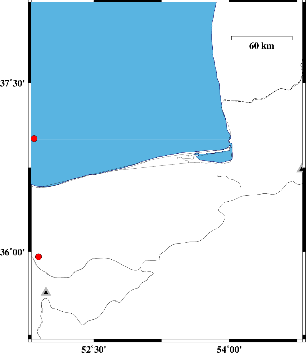 | 2012/03/13 | 04:45:37.8 | 08:15:37.8 | 37.27 | 53.22 | 14 | ML3.3 | Caspian Sea, 70 km North of Neka |