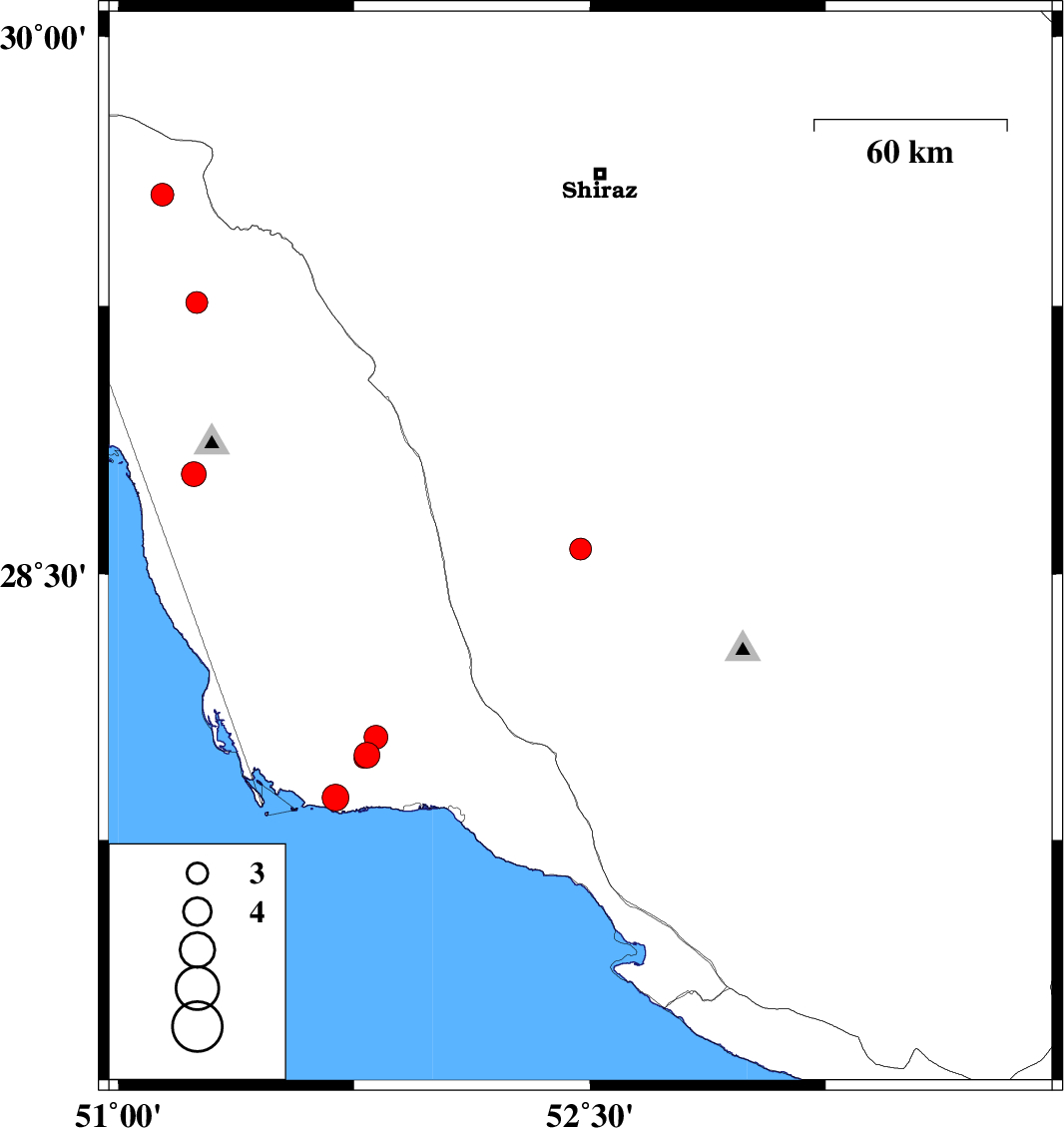 Bushehr Province, 33 km North-West of Bandar-e kangan | |