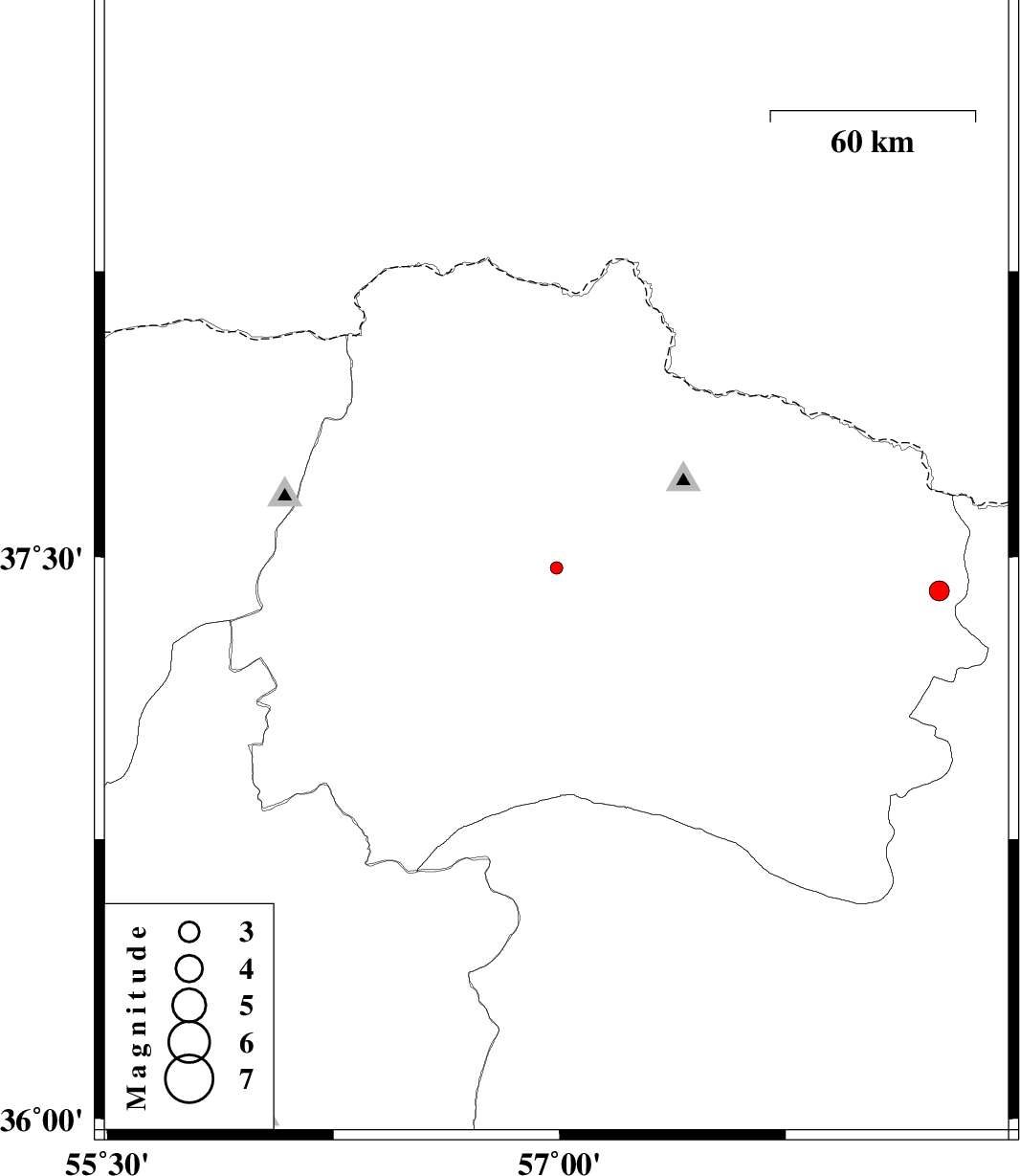 | 2012/03/29 | 10:12:38.7 | 14:42:38.7 | 37.41 | 58.26 | 15 | ML2.9 | Khorasan(center) Province, 29 km East of Shirvan |