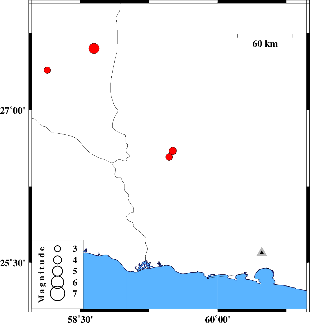 | 2012/03/25 | 07:49:57.4 | 12:19:57.4 | 26.6 | 59.51 | 14 | ML3.6 | Sistan va Baloochestan Province, 81 km North-West of Nikshahr |