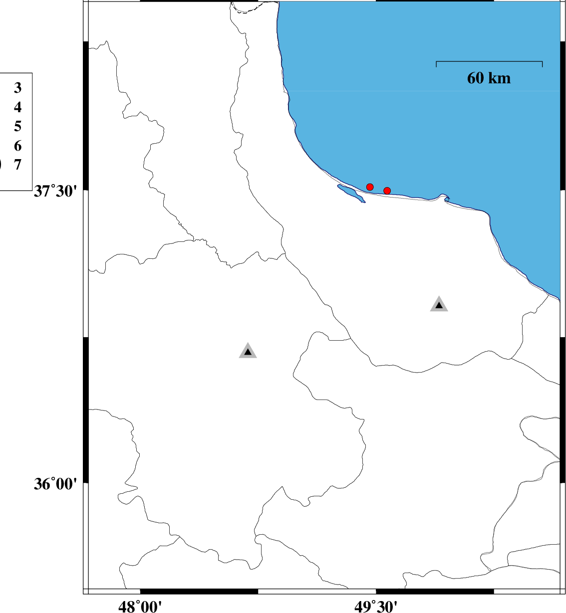 | 2012/04/07 | 20:21:38.8 | 00:51:38.8 | 36.84 | 49.46 | 0 | ML3 | Gilan Province, 4 km Rudbar | ||