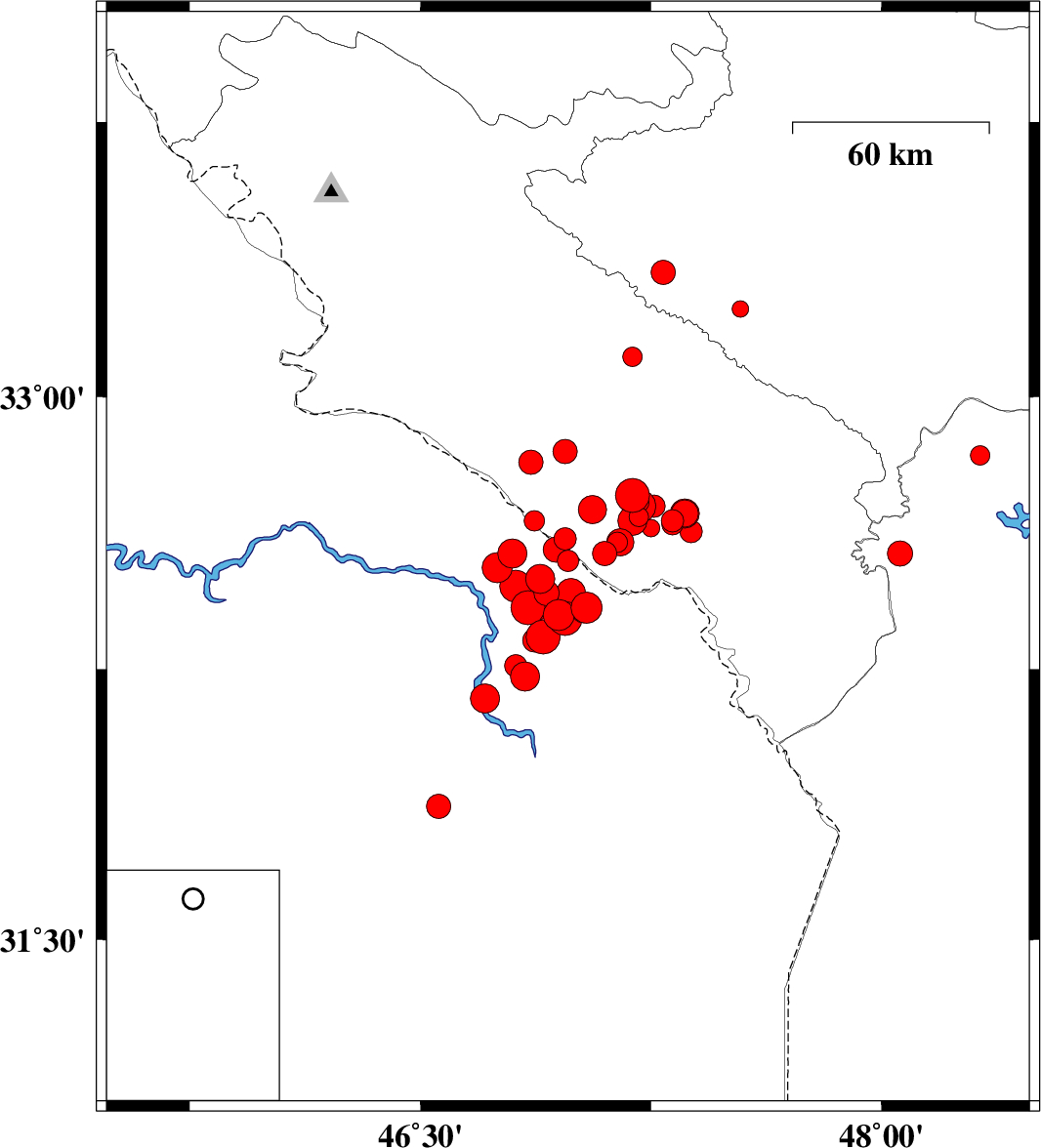 2012/04/20 01:48:42.9 06:18:42.9 32.647.1533 ML4 Ilam Province, 15 km West of Dehloran