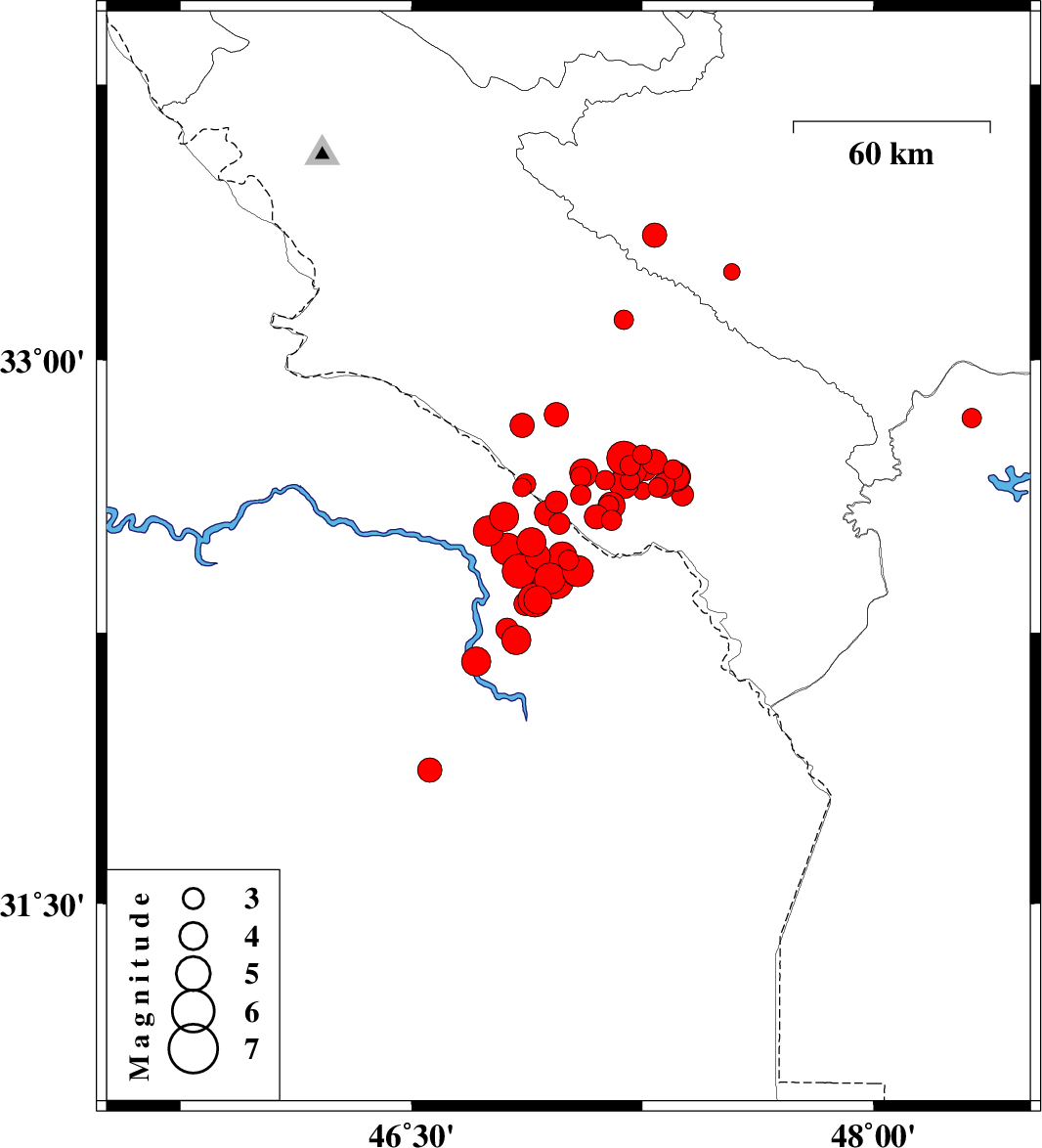 2012/04/20 01:48:42.9 06:18:42.9 32.647.1533 ML4 Ilam Province, 15 km West of Dehloran