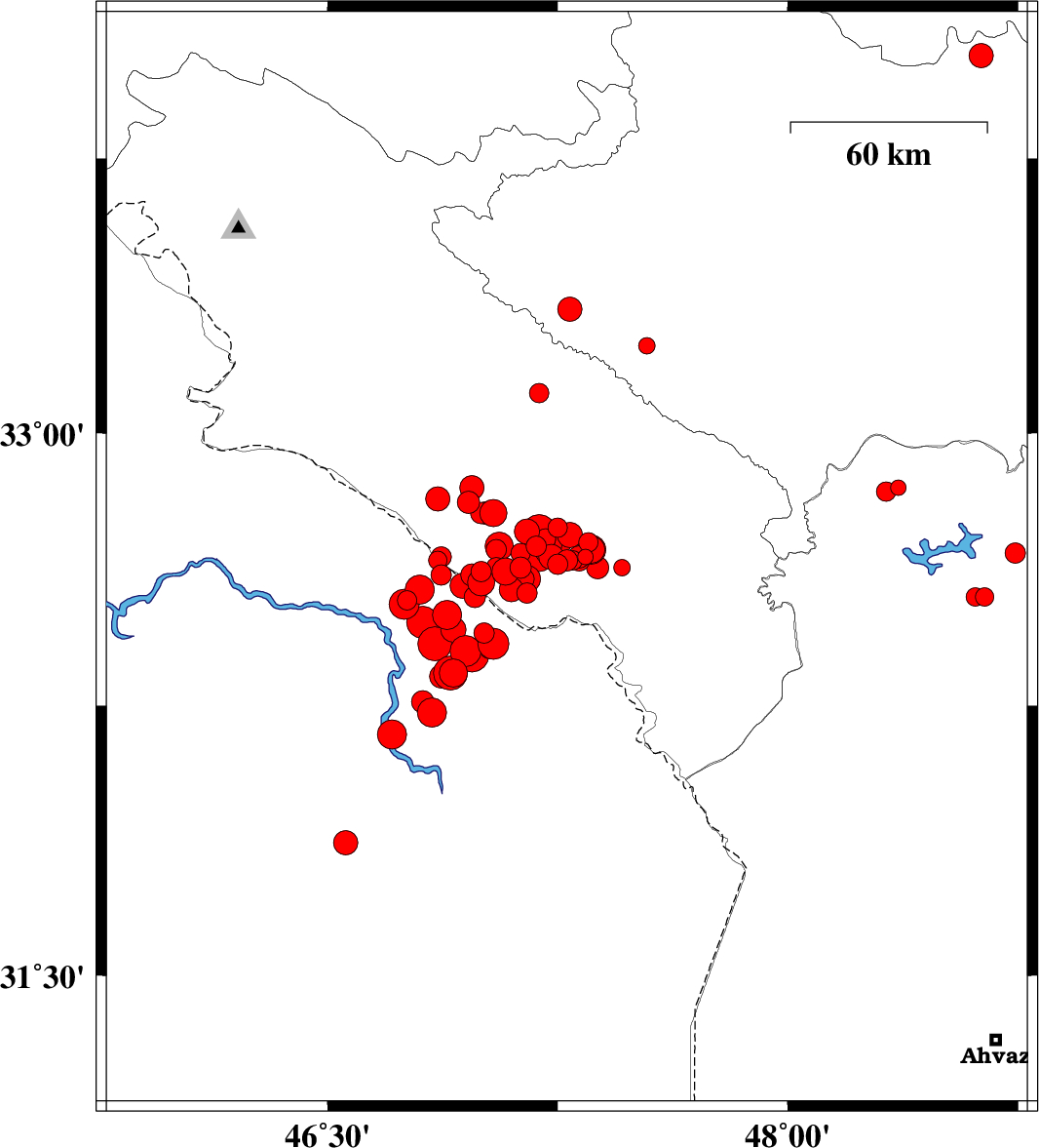 2012/04/20 01:48:42.9 06:18:42.9 32.647.1533 ML4 Ilam Province, 15 km West of Dehloran