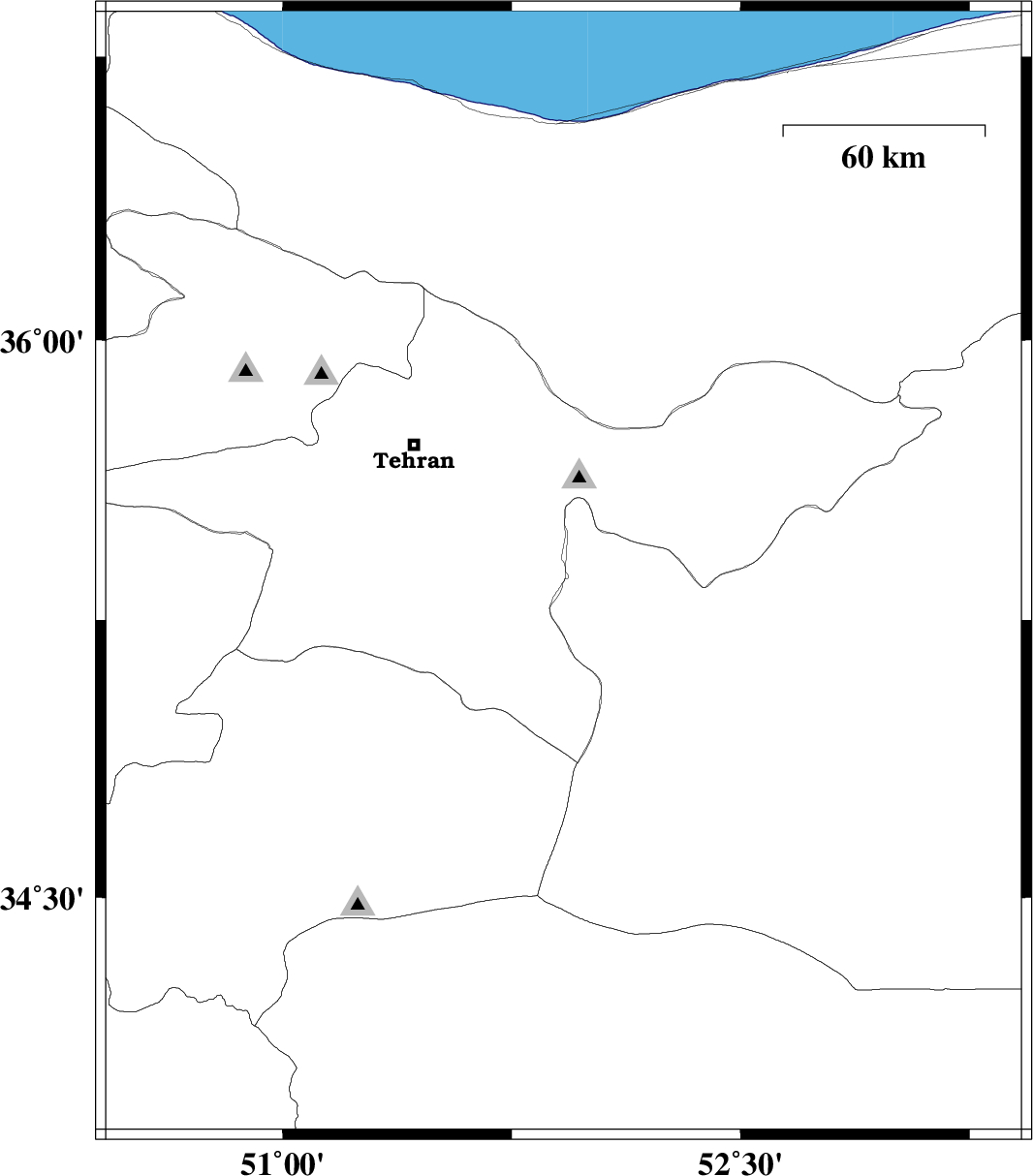 | 2012/05/11 | 07:45:05.8 | 12:15:05.8 | 35.5 | 53.21 | 16 | ML2.9 | Semnan Province, 19 km West of Semnan |