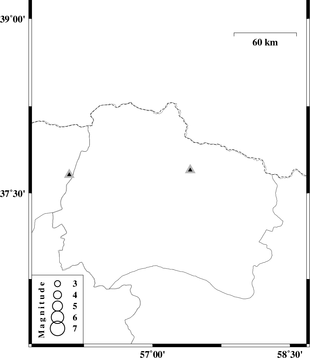| 2012/06/05 | 06:04:34.3 | 10:34:34.3 | 37.68 | 57.18 | 14 | ML1.6 | Khorasan(north) Province, 26 km North-West of Bojnurd |