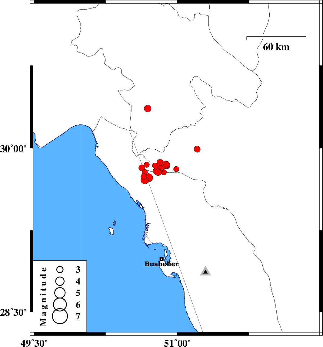 2012/06/07 04:42:57.3 09:12:57.3 29.7850.844 ML3.1 Bushehr Province, 36 km North-East of Bandar-e genaveh