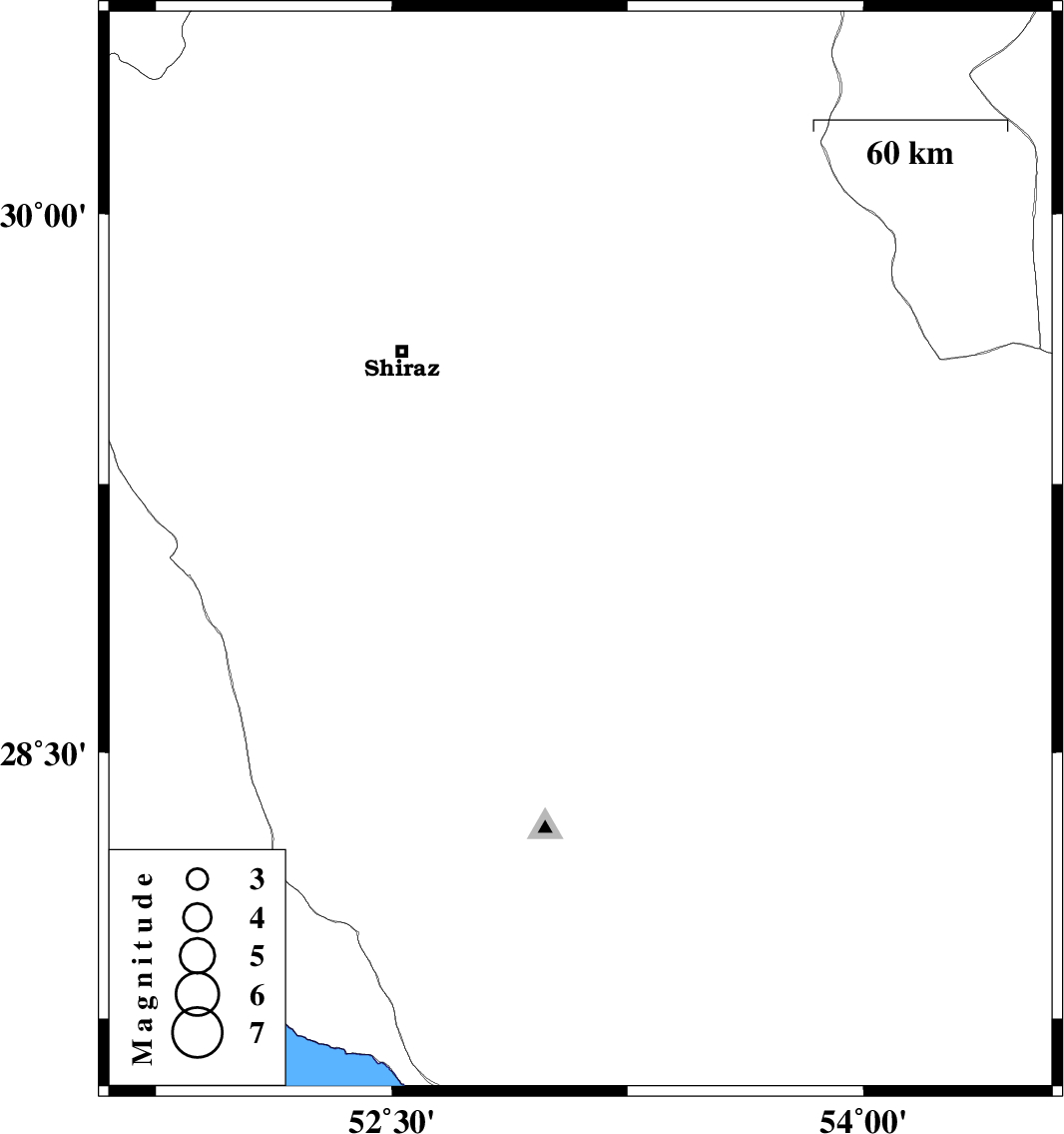 | 2012/06/12 | 22:53:50.2 | 03:23:50.2 | 29.06 | 53.1 | 15 | ML3.6 | Fars Province, 54 km North-West of Fasa |