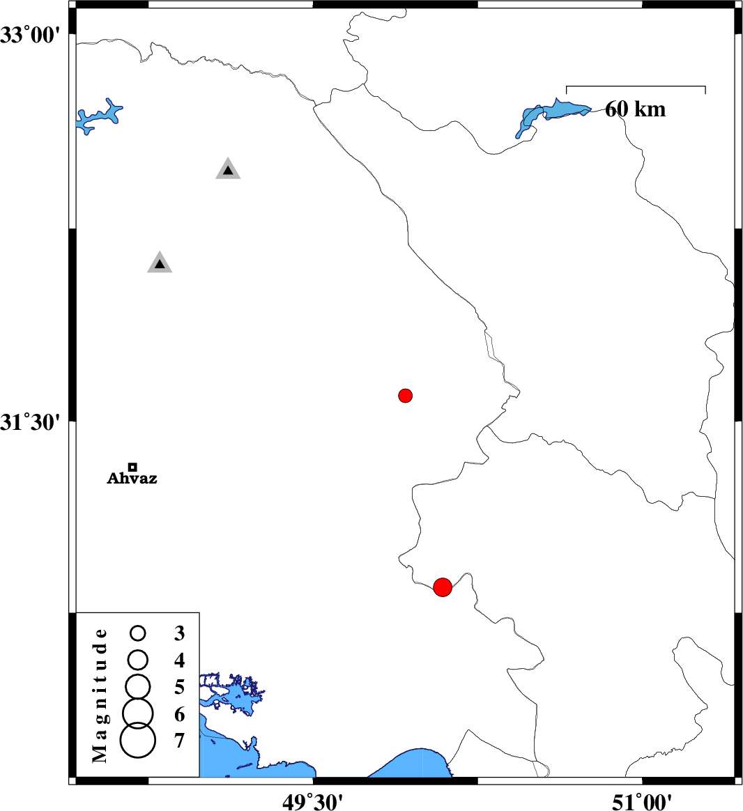 | 2012/06/23 | 11:13:41.7 | 15:43:41.7 | 30.85 | 50.09 | 14 | ML3.8 | Kohkiluieh va boyerahmad Province, 32 km North-West of Behbahan |