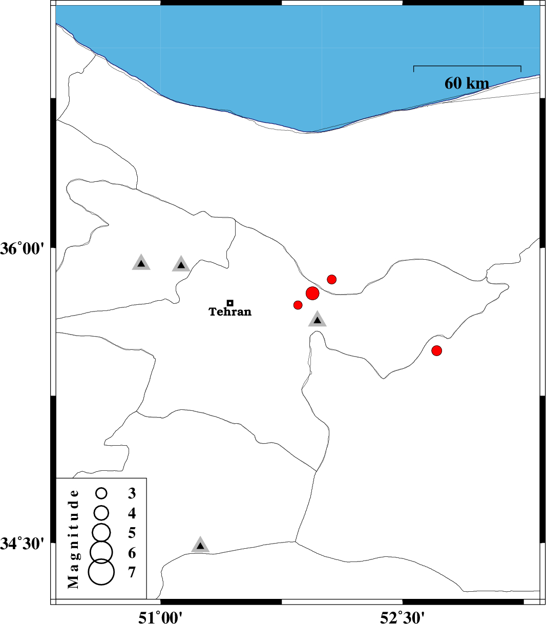 | 2012/07/02 | 04:55:40.2 | 09:25:40.2 | 35.71 | 51.85 | 7 | ML2.4 | Tehran Province, 20 km West of Damavand | ||