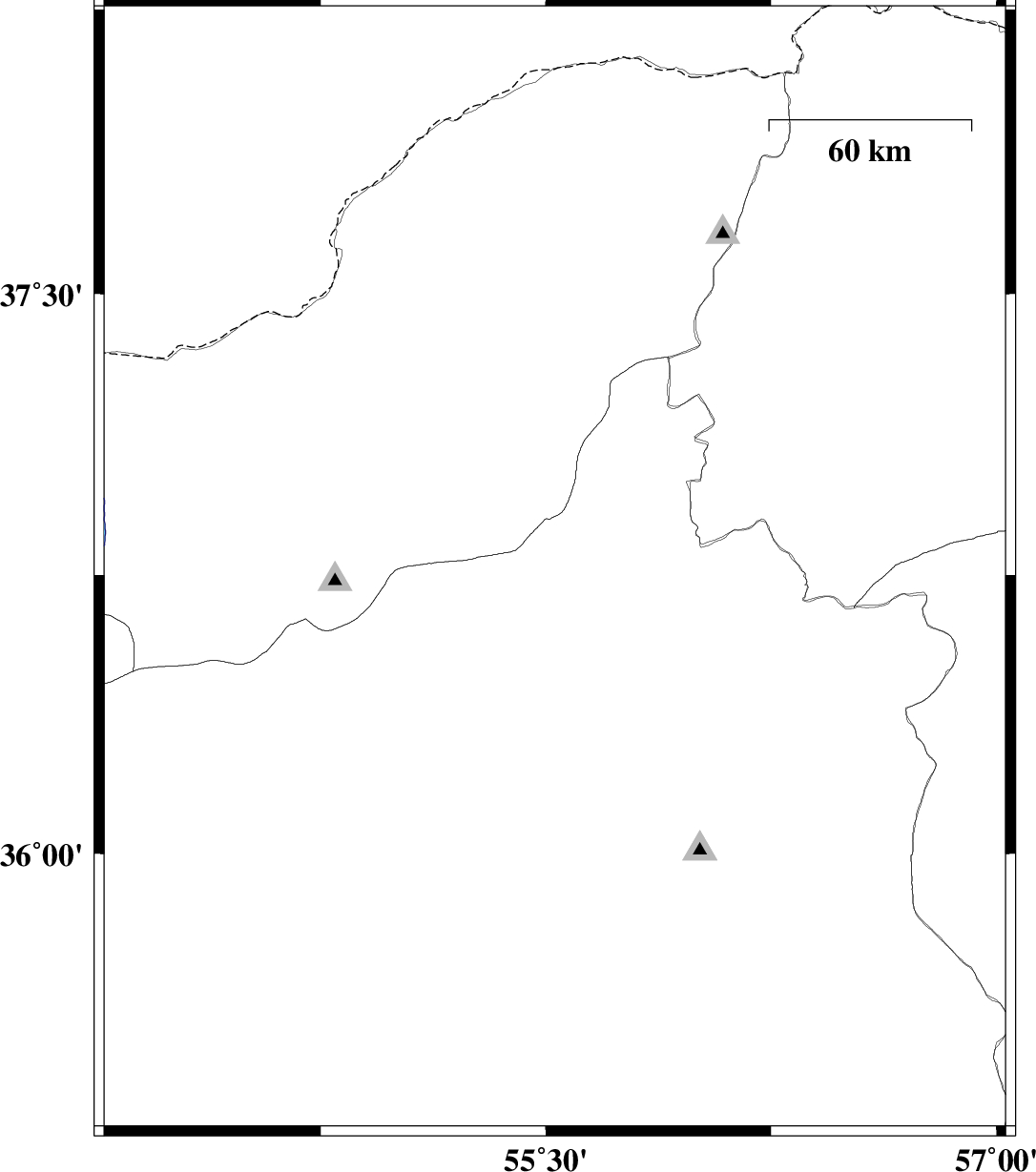 | 2012/06/26 | 23:55:56.0 | 04:25:56.0 | 36.97 | 55.3 | 14 | ML2.3 | Golestan Province, 14 km East of Ramian |