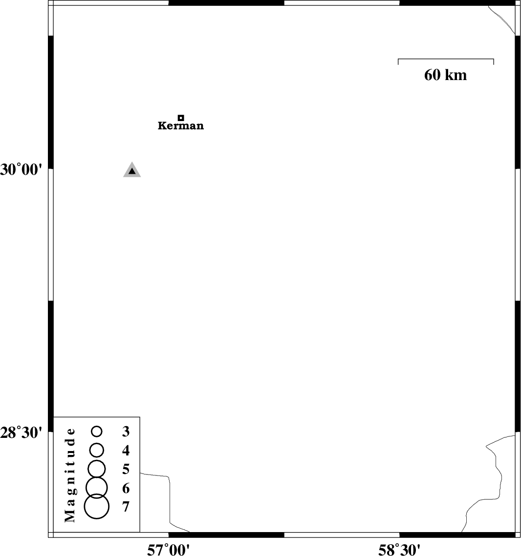 | 2012/07/17 | 12:38:13.6 | 17:08:13.6 | 29.42 | 57.75 | 14 | ML3.1 | Kerman Province, 84 km North of Jiroft |