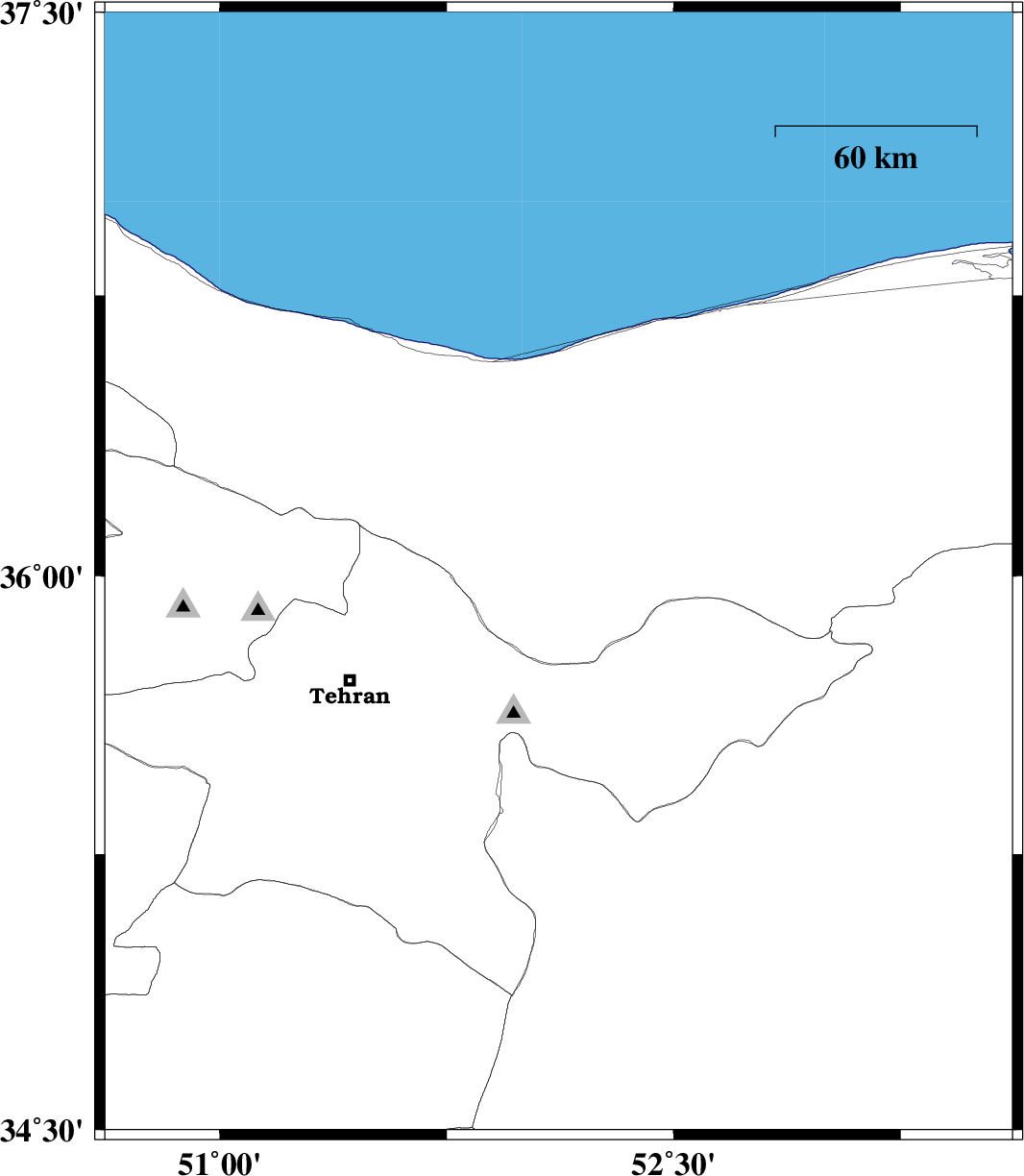 | 2012/07/19 | 08:17:01.3 | 12:47:01.3 | 35.19 | 52.69 | 25 | ML2.8 | Semnan Province, 32 km East of Garmsar |