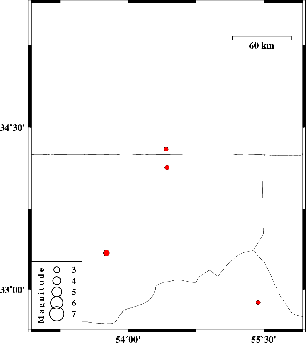 2012/07/31 18:30:27.1 23:00:27.1 33.3453.7618 ML3 Esfahan Province, 81 km North-East of Nain