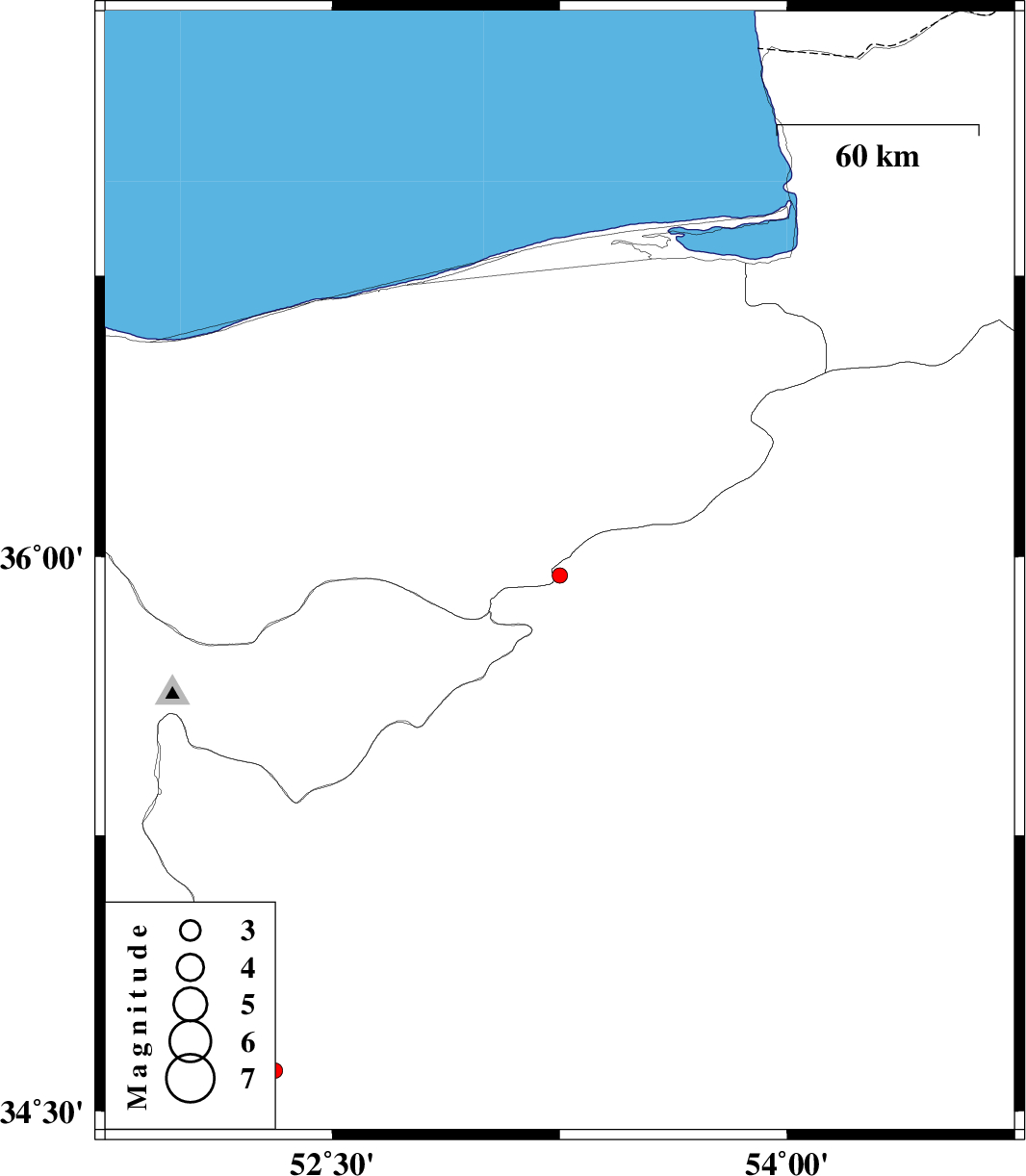 | 2012/07/27 | 15:12:11.1 | 19:42:11.1 | 34.61 | 52.31 | 14 | ML2.3 | Semnan Province, 67 km South of Garmsar |
