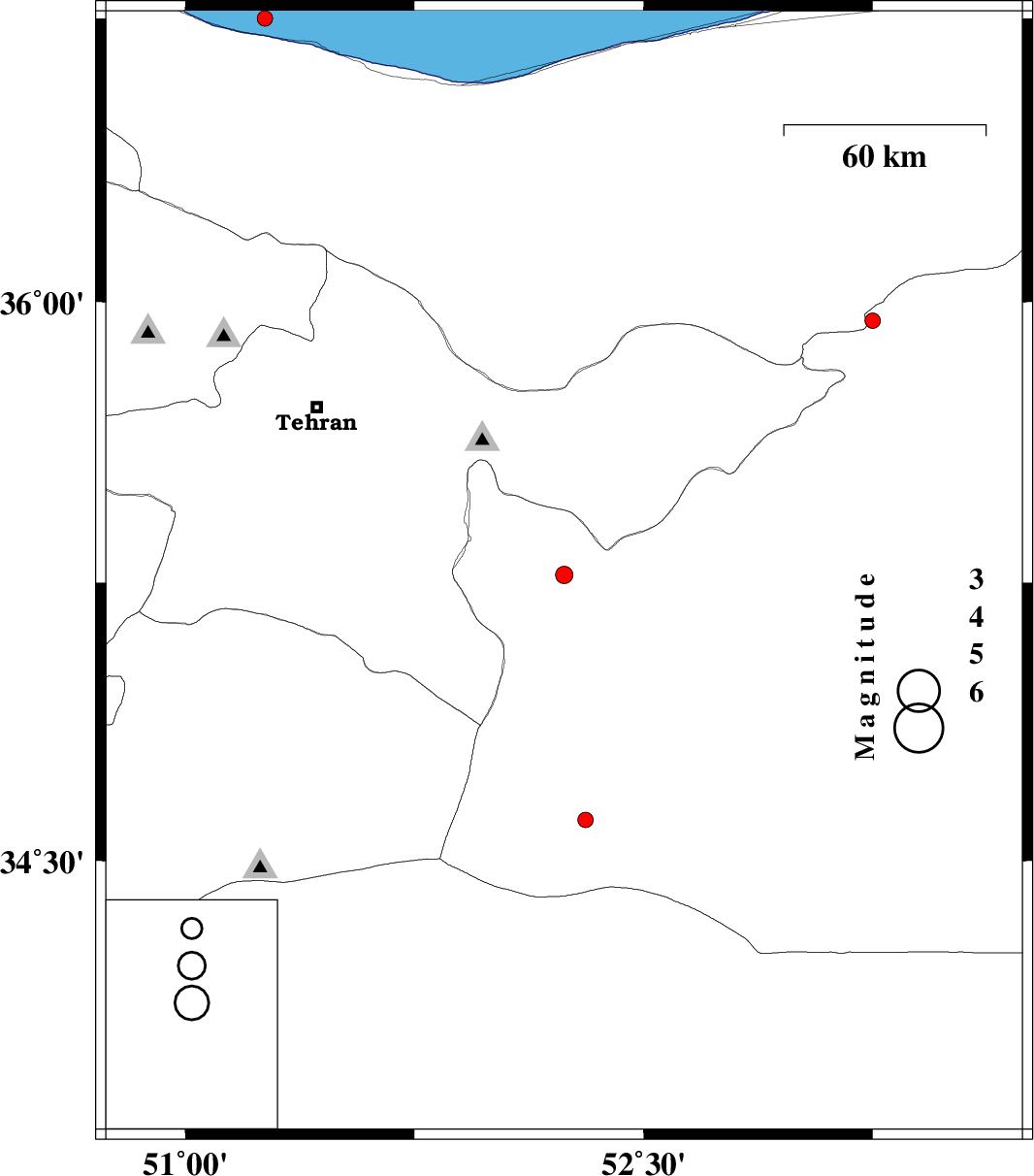 | 2012/08/03 | 03:16:54.4 | 07:46:54.4 | 36.75 | 51.26 | 14 | ML2.2 | Caspian Sea, 18 km West of Chalus | ||