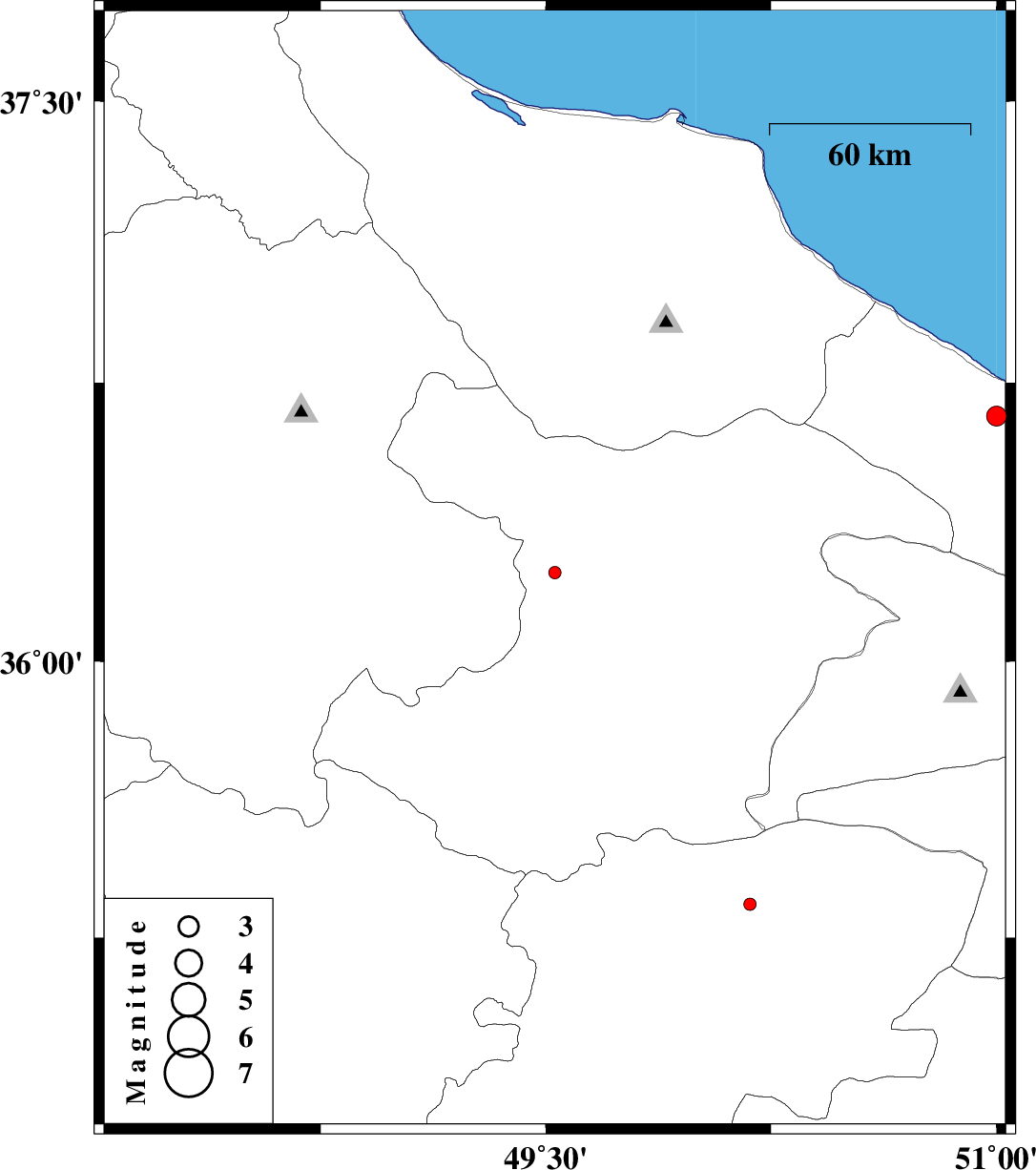 | 2012/08/26 | 20:40:04.8 | 01:10:04.8 | 36.66 | 51 | 17 | ML2.9 | Mazandaran Province, 20 km South-East of Tonekabon | ||