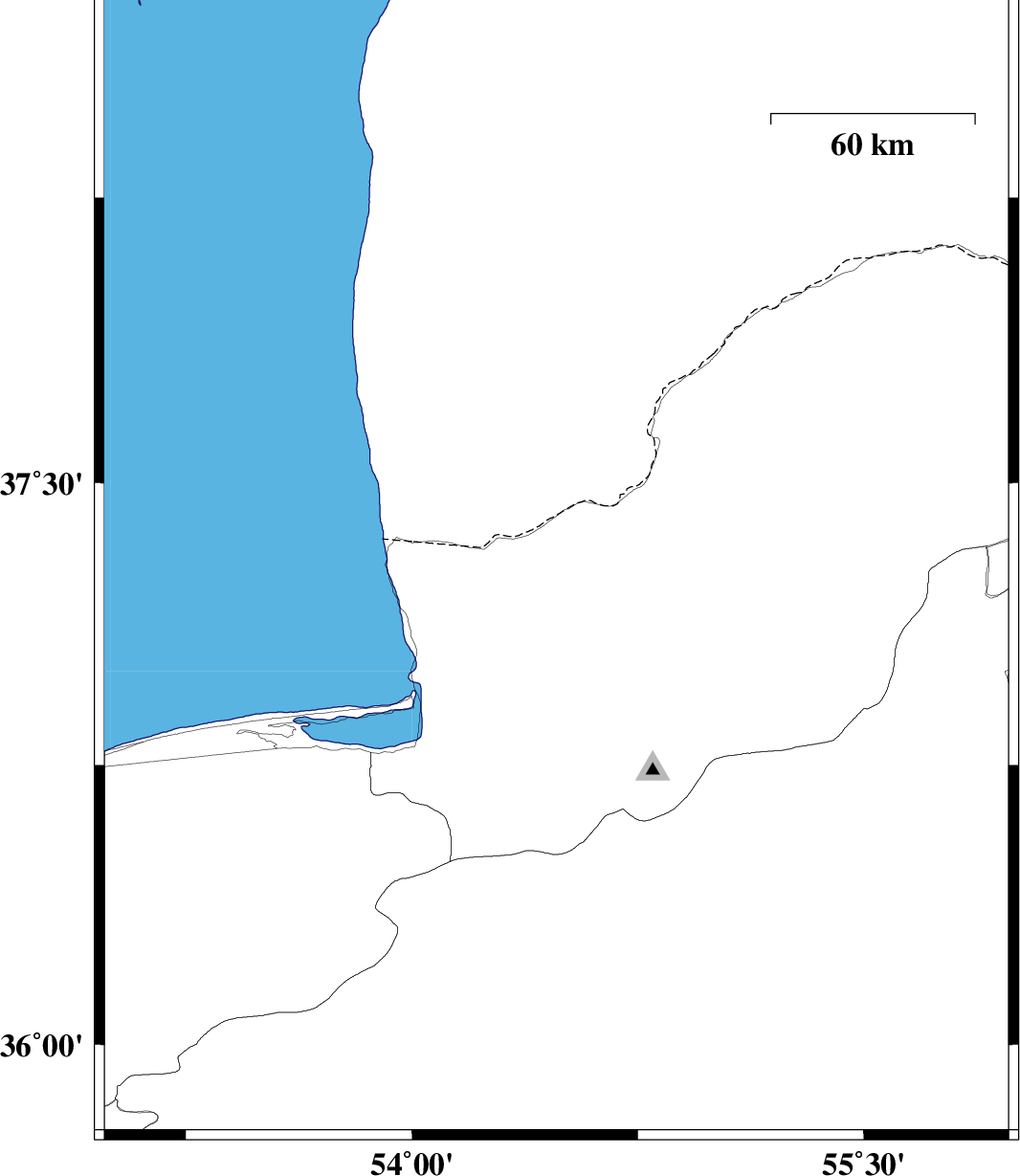 | 2012/08/29 | 23:46:21.5 | 04:16:21.5 | 36.74 | 54.82 | 15 | ML2.5 | Golestan Province, 18 km South of Ali Abad |