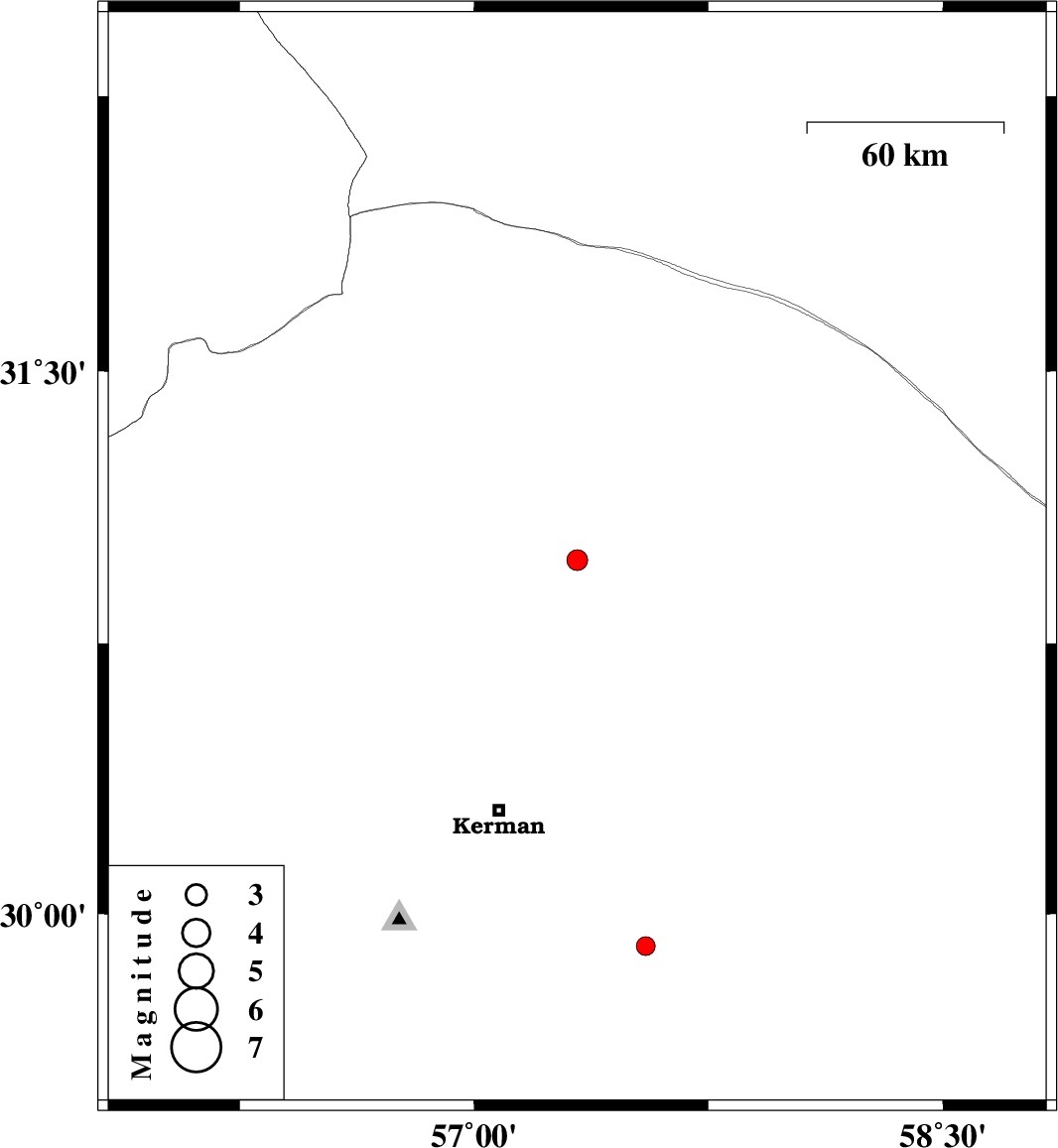 | 2012/09/03 | 20:01:52.0 | 00:31:52.0 | 29.91 | 57.55 | 14 | ML2.7 | Kerman Province, 62 km South-East of Kerman |