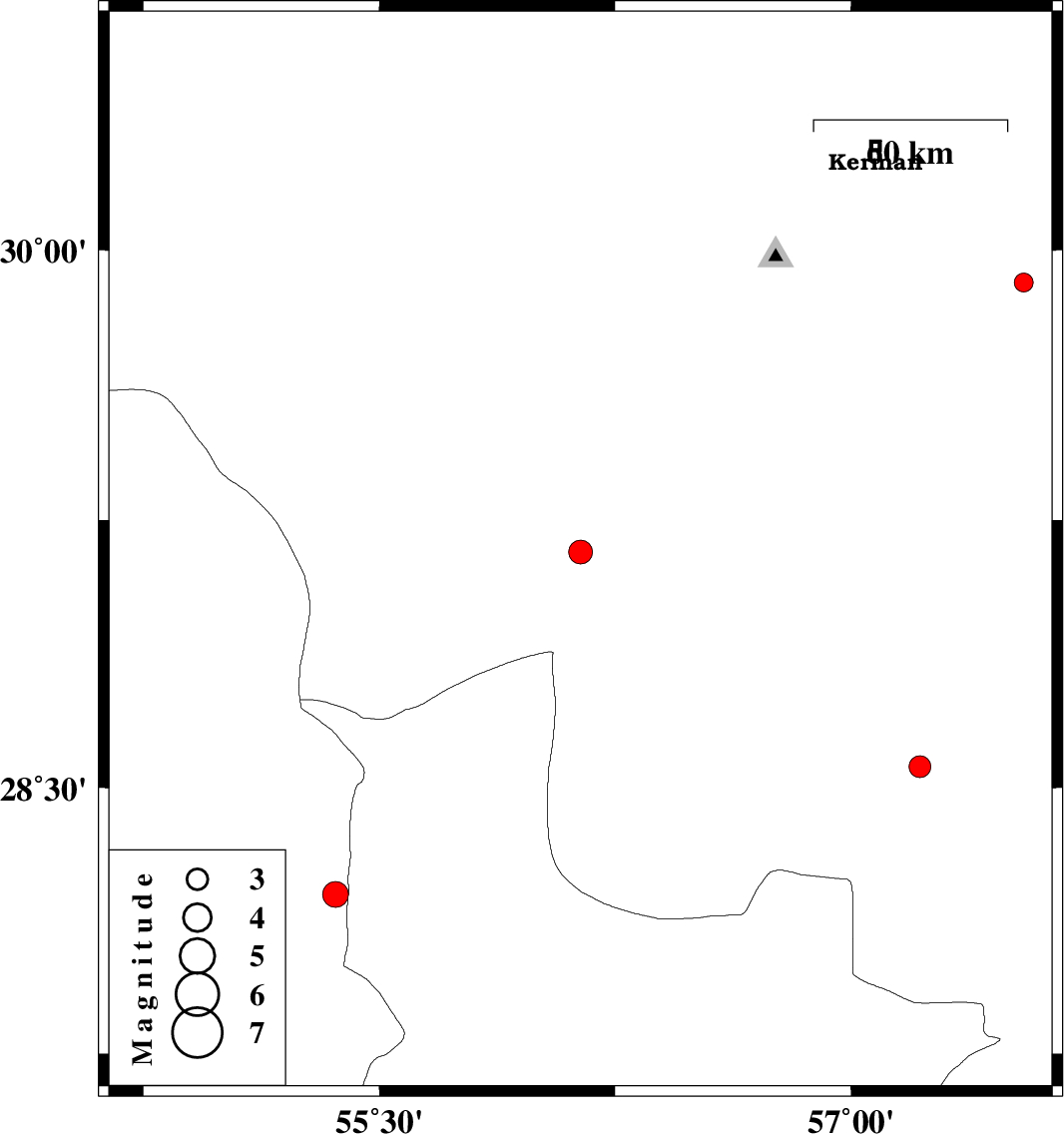 | 2012/08/18 | 14:46:32.0 | 19:16:32.0 | 28.56 | 57.22 | 35 | ML3.1 | Kerman Province, 52 km South-West of Jiroft |