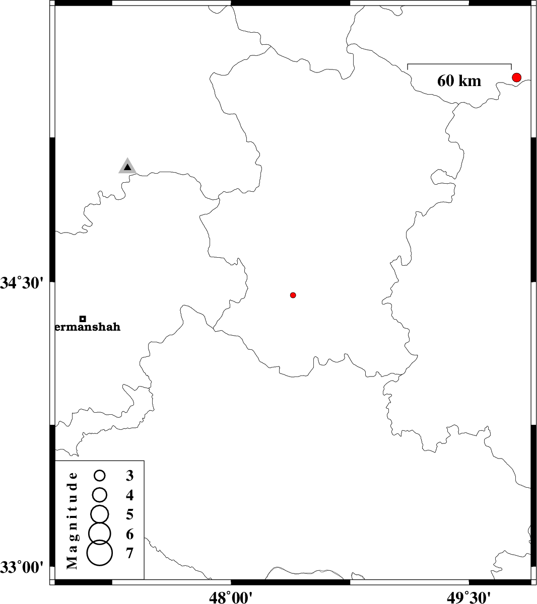 | 2012/09/18 | 02:41:51.8 | 07:11:51.8 | 34.43 | 48.39 | 38 | ML1.6 | Hamedan Province, 15 km South of Tuyserkan | ||